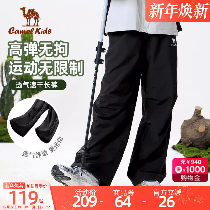 小骆驼儿童休闲裤男童速干透气登山运动女童中大童宽松阔腿长裤子