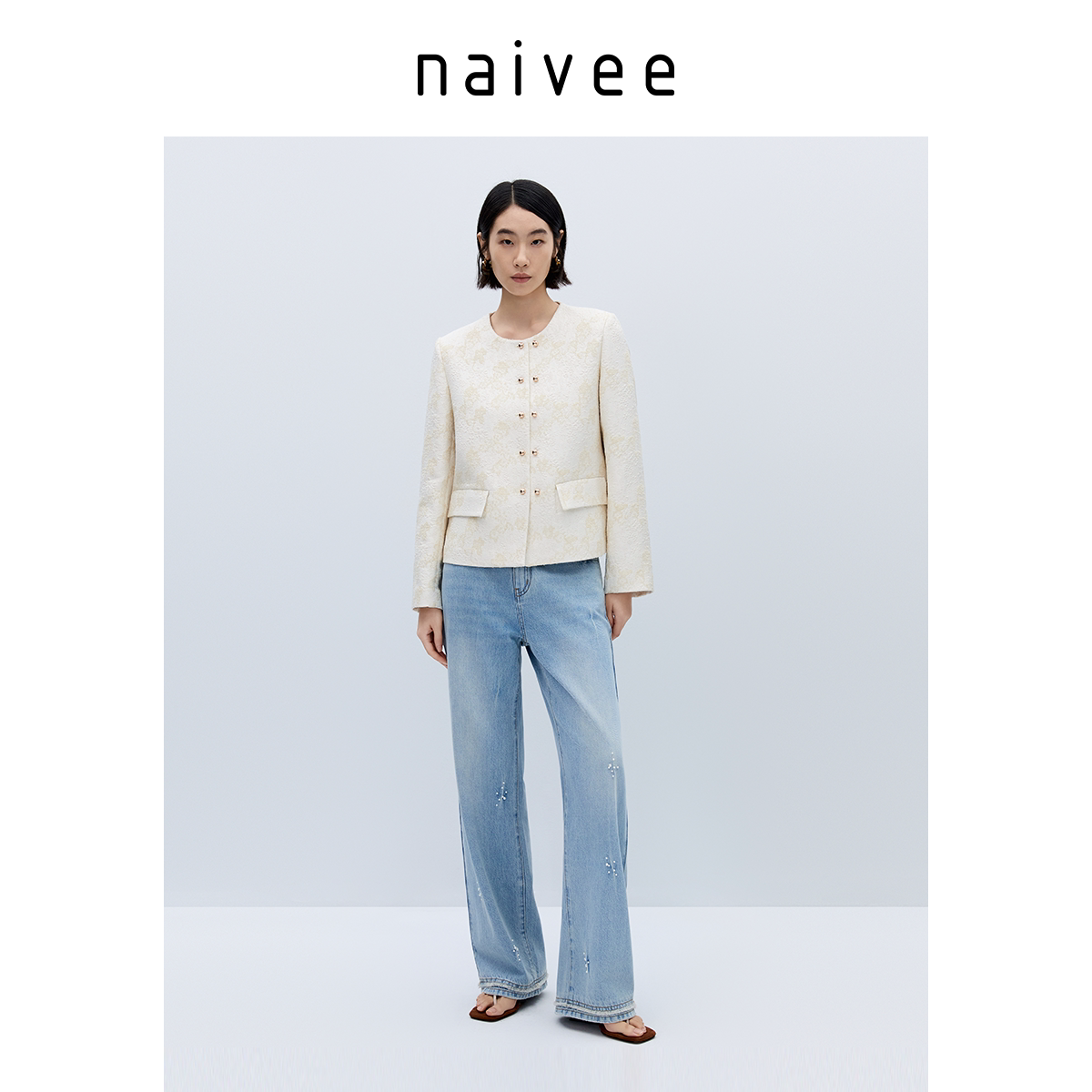 商场同款naivee纳薇秋都市通勤时尚提花法式小香风短外套女春新款