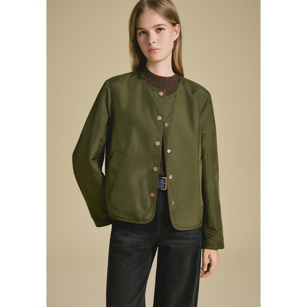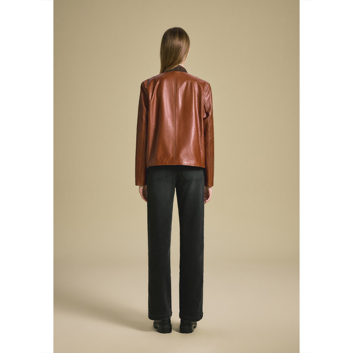 Eland衣恋皮衣女纯色带拉链长袖翻领外套2025冬季新款