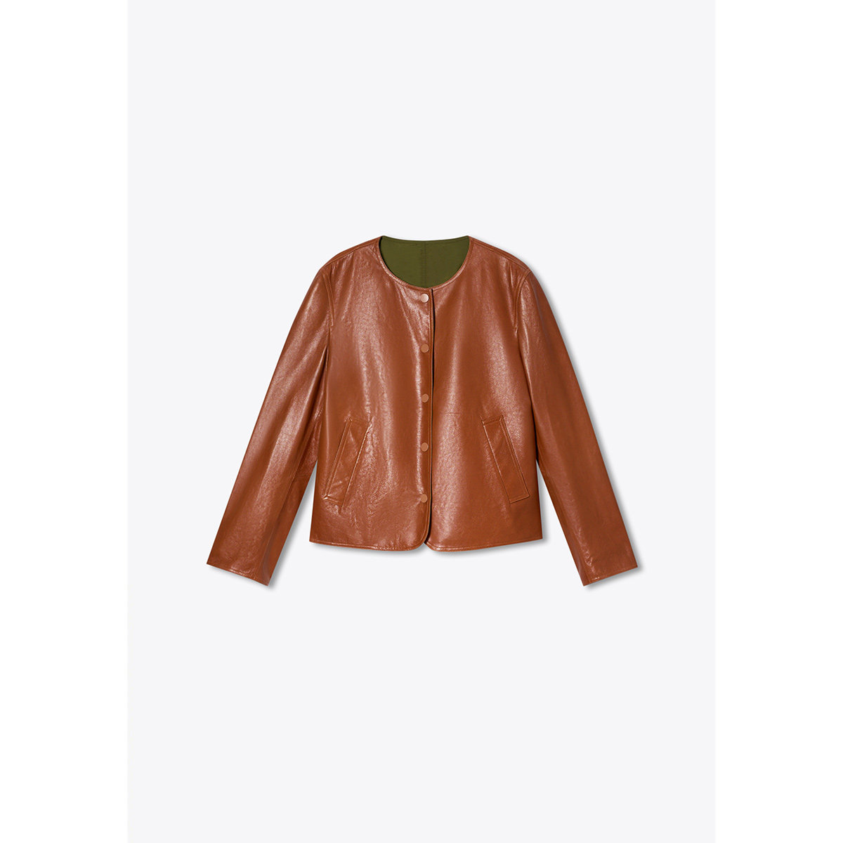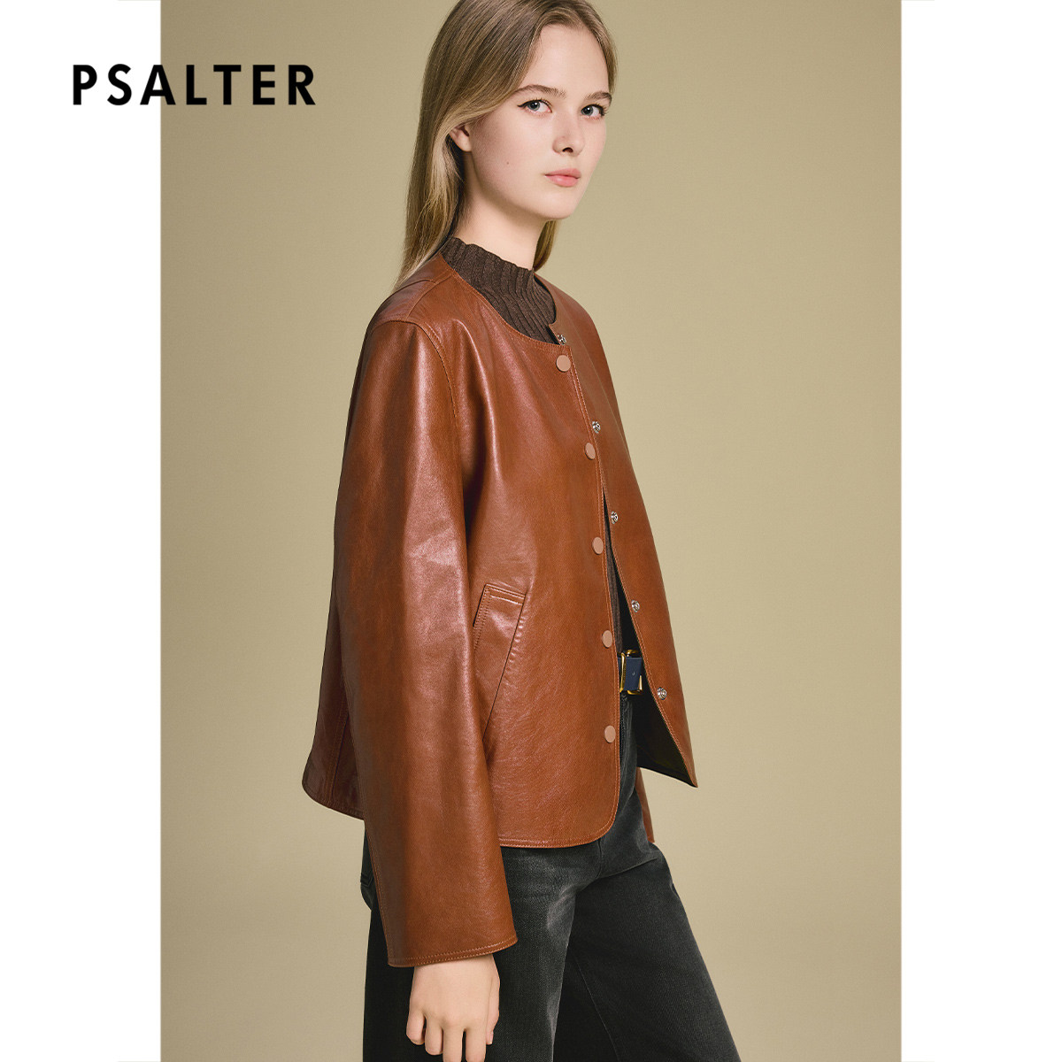 诗篇专选两面穿真皮短款皮衣外套宽松圆领夹克2025秋款
