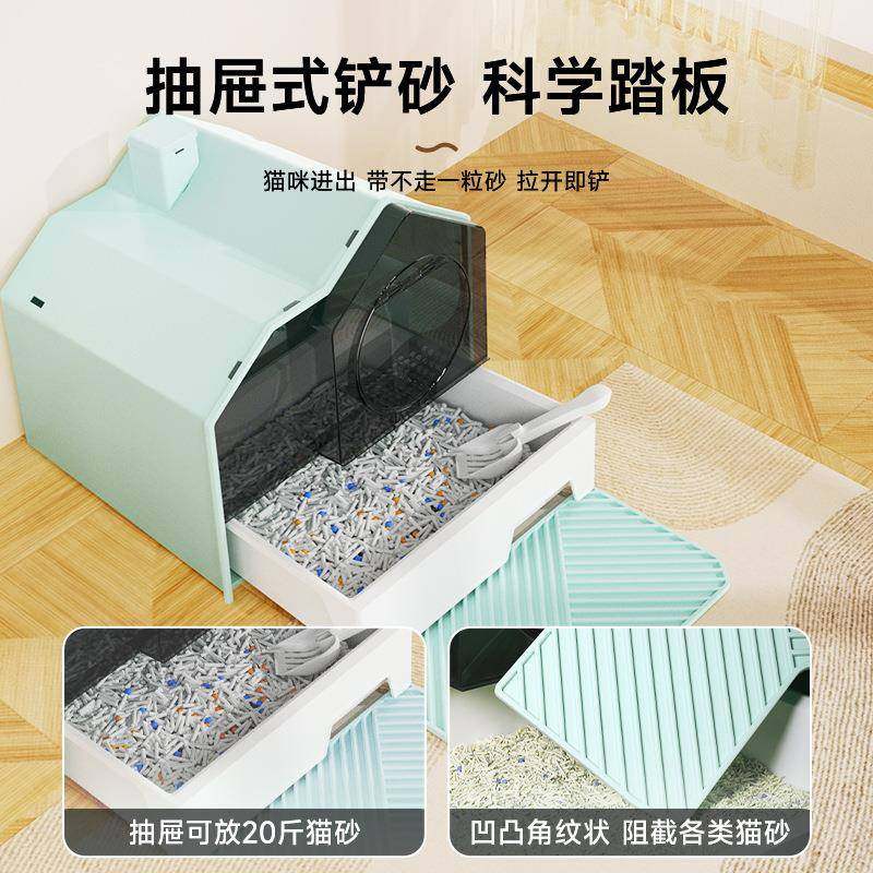 全封闭塑料猫砂盆大空间隔臭防溅砂大型猫厕所抽屉式猫沙盆