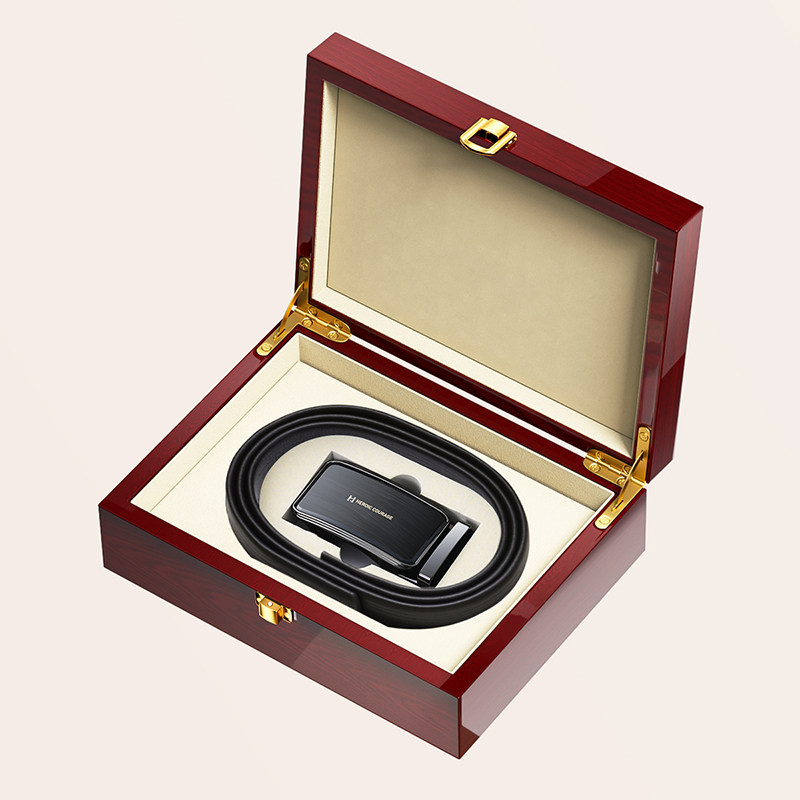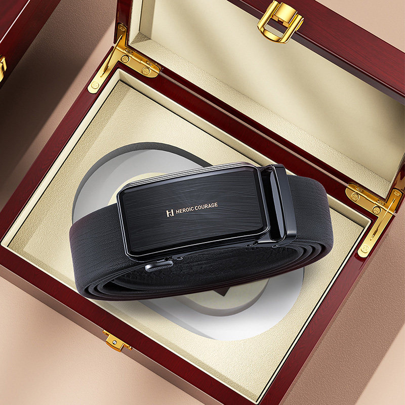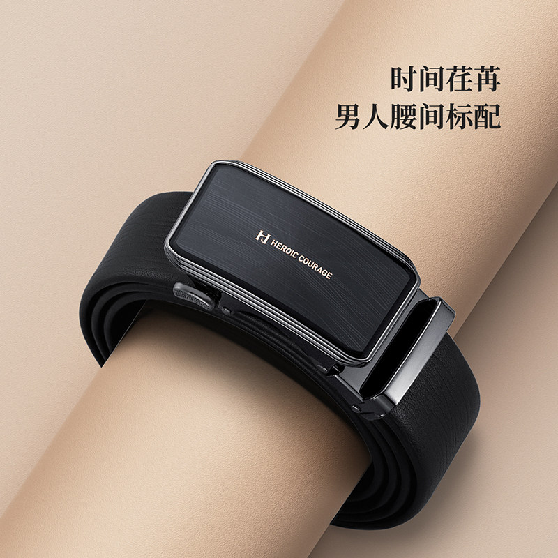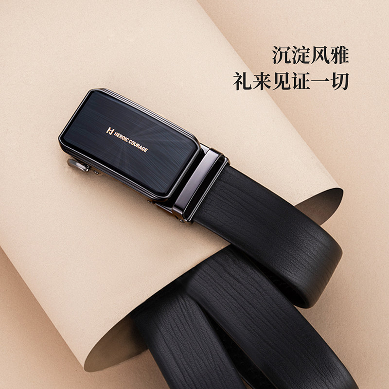 HLA/海澜之家皮带头层牛皮男士自动扣腰带礼盒套装送男友爸爸礼物