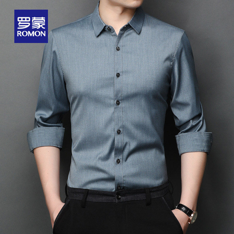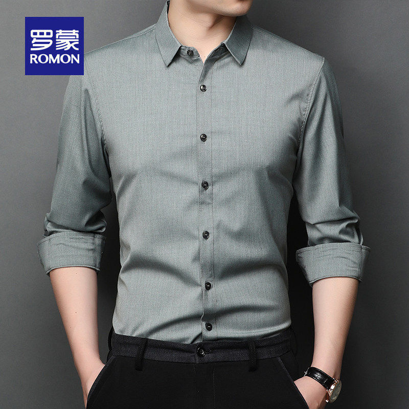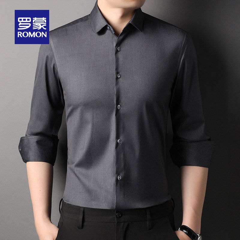 罗蒙男士商务休闲长袖衬衫2026春季新款职业工装衬衣易打理上衣男