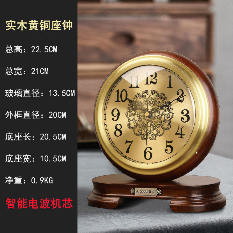 51n中式实木黄铜钟表座钟客厅复古台钟美式床头老式桌面摆件台