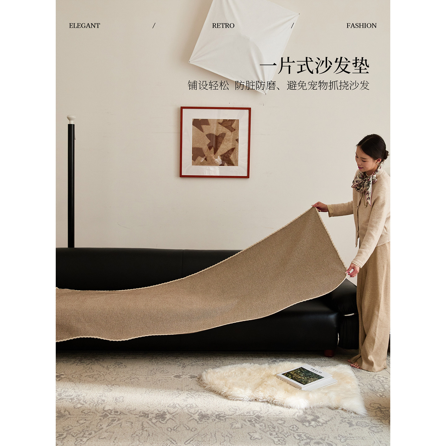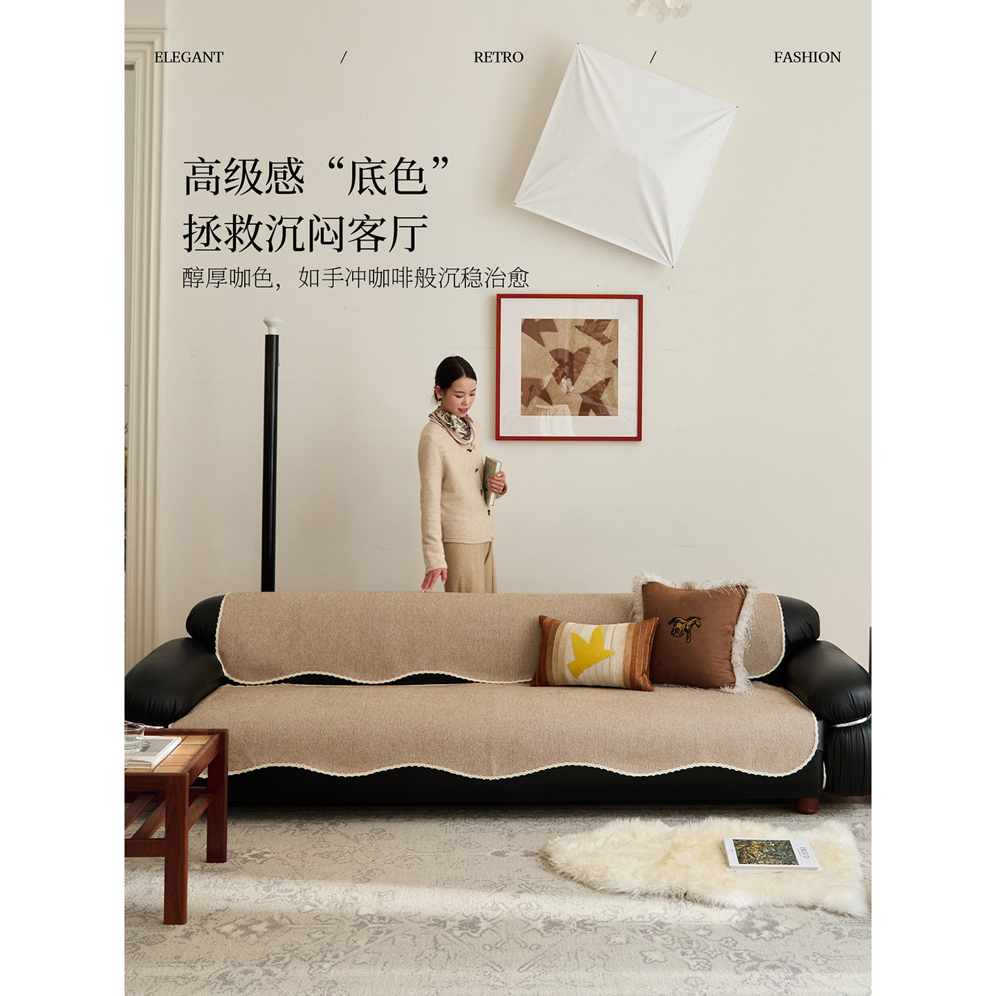 蜡笔派格塔咖色异形沙发垫四季通用新款轻奢极简风防滑防猫抓P