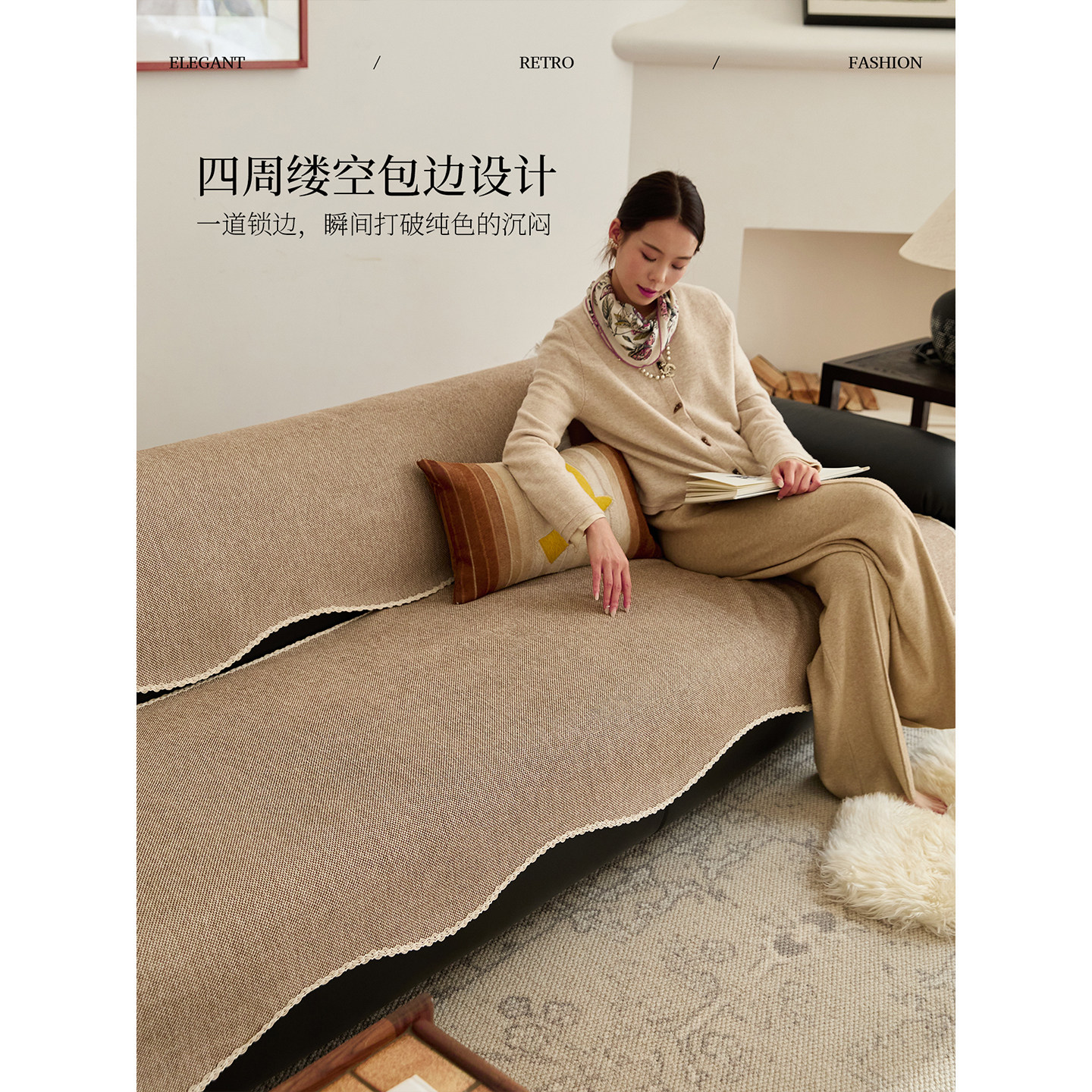 现代轻奢极简风异形沙发垫防滑防猫抓