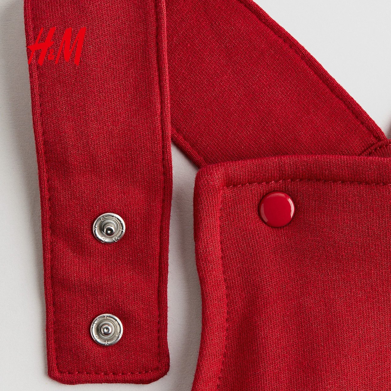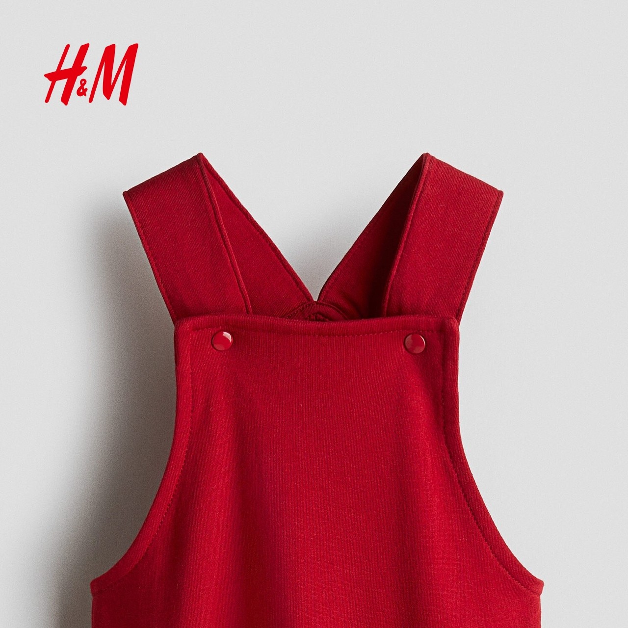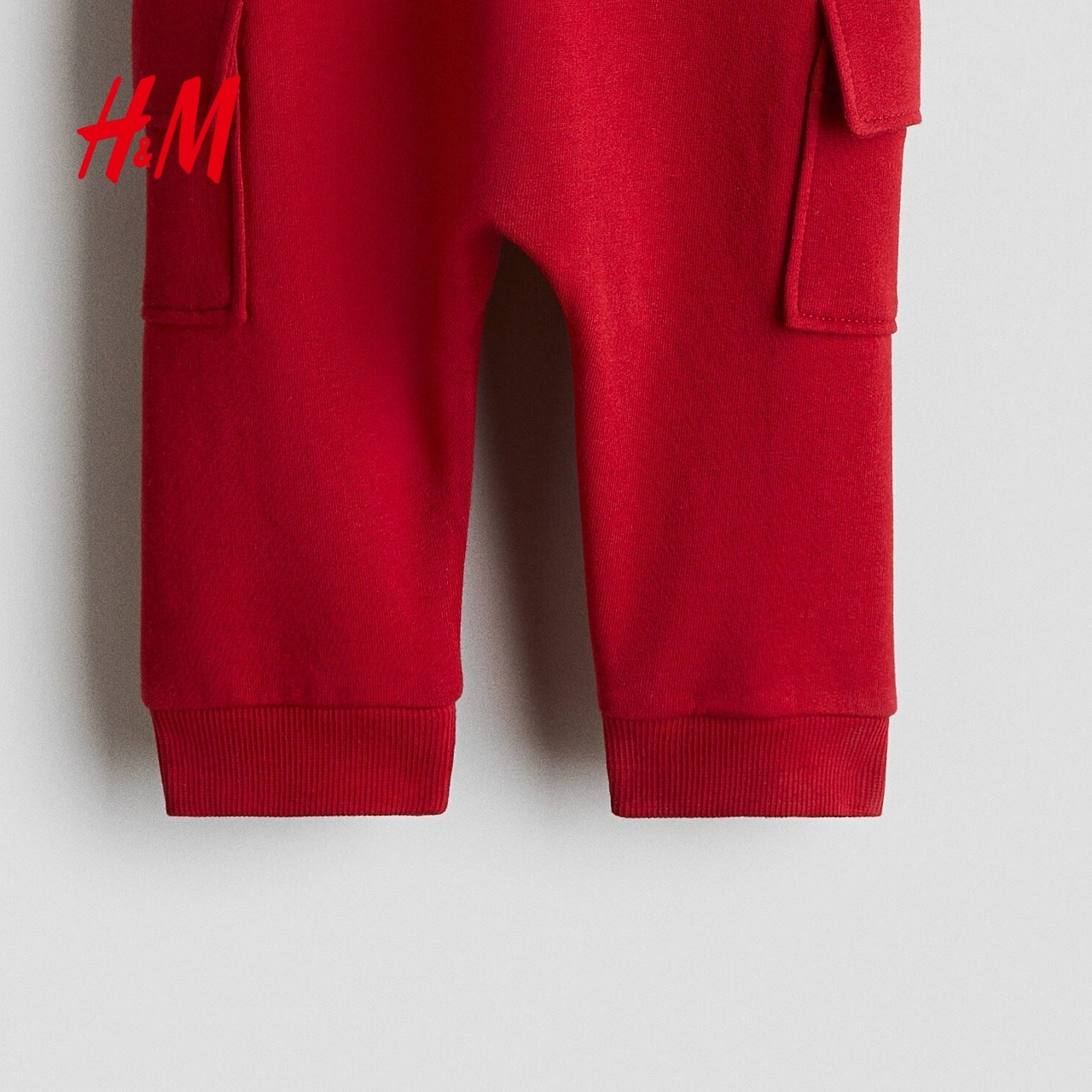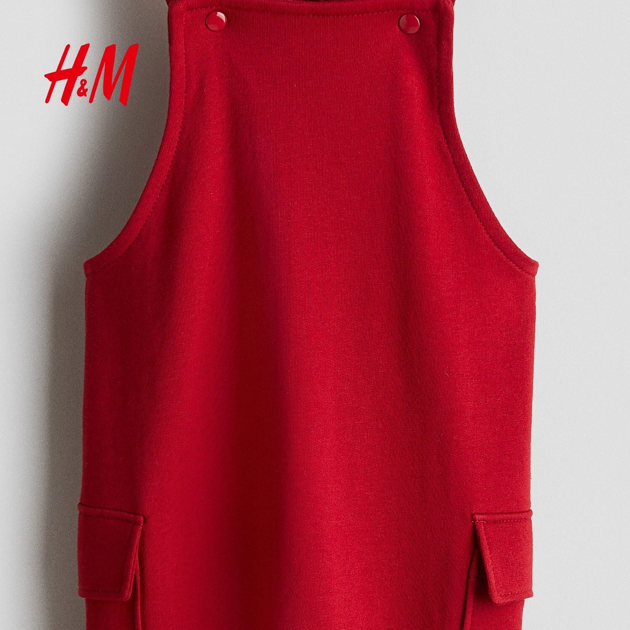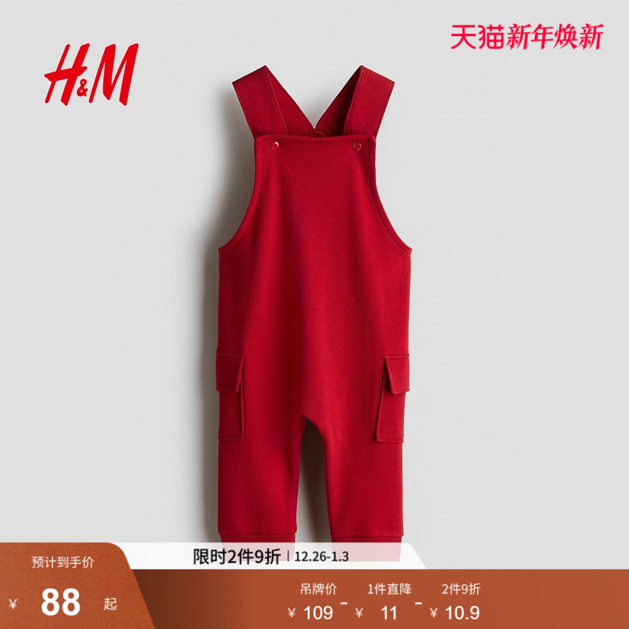 HM童装男婴女婴裤子2025冬季新款红色新年卫衣面料背带裤1192599