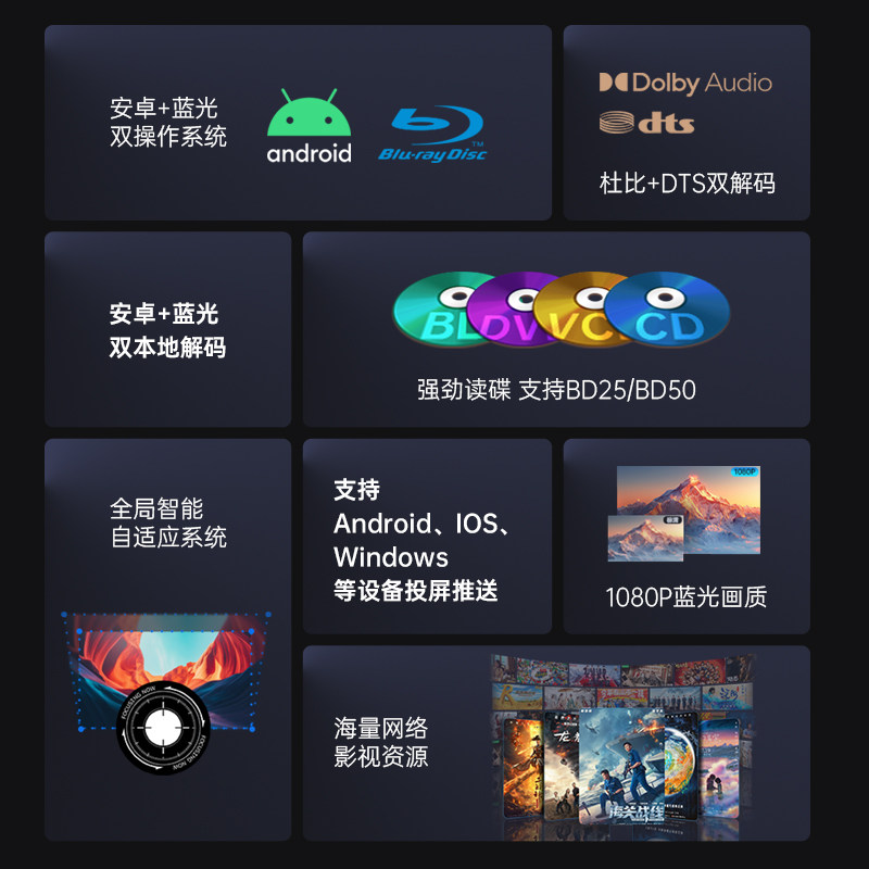 多功能一体机 便携投屏 蓝牙 碟片+网络播放