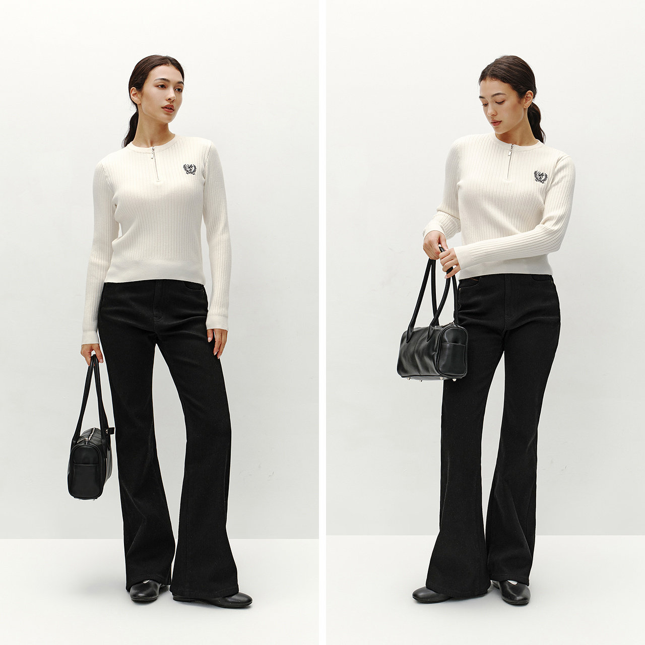 蕉下针织衫polo领肌底衣修身显瘦新款白色长袖T恤内搭上衣打底衫