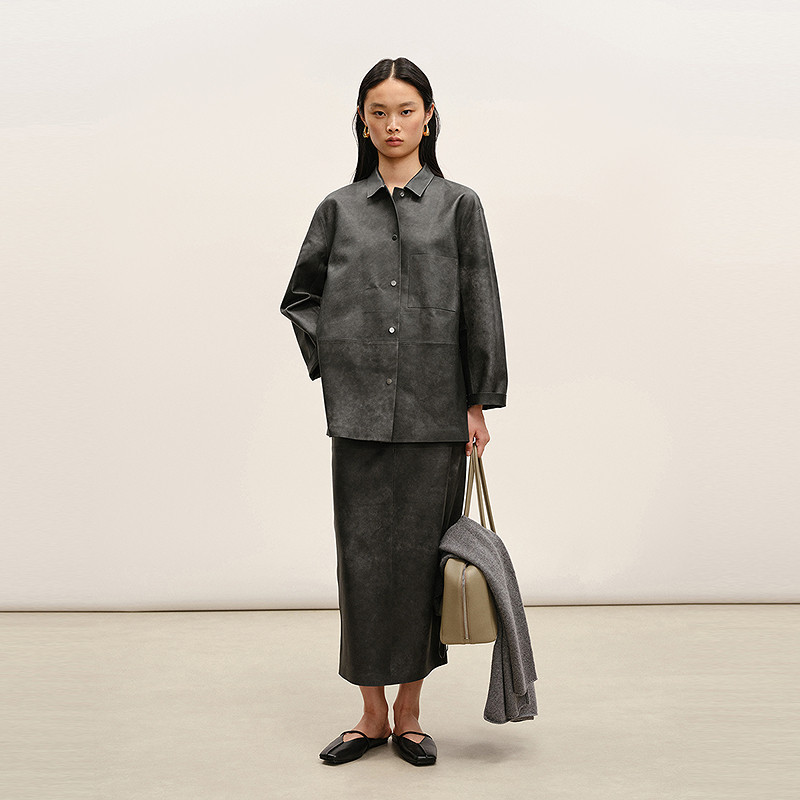 【商场同款/精工系列】LESS2026春新款复古真皮衣外套女2Q1A16090