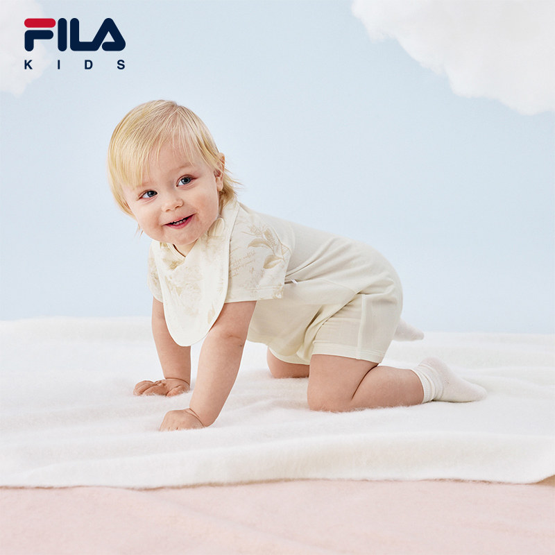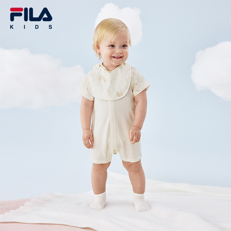 FILA斐乐儿童童装爬爬服2026年夏季新款男婴幼童简约风针织连体衣