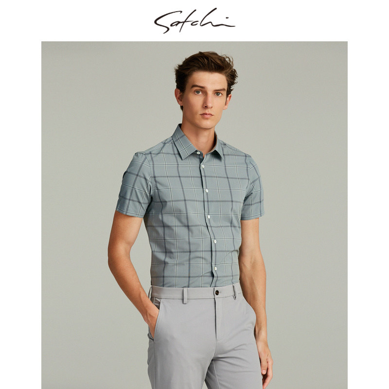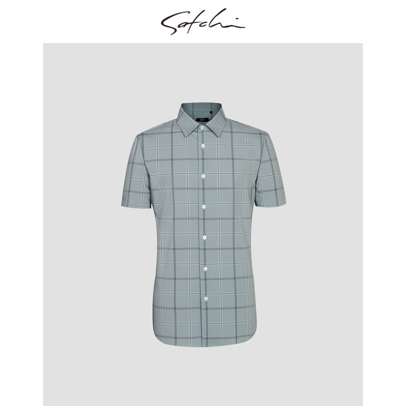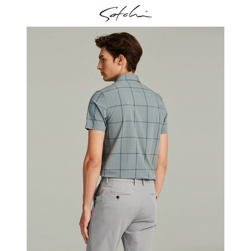 SATCHI沙驰男装商场同款男士短袖衬衫格子冰丝衬衣88RCA8414009