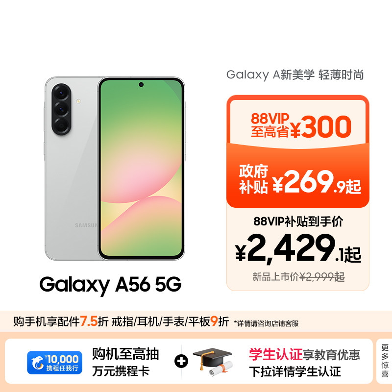 【88VIP至高省569元】Samsung/三星 Galaxy A56 5G智能拍照手机官方旗舰店正品 设计轻薄时尚游戏手机