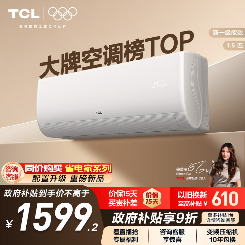 TCL空调1.5匹新一级能效变频挂机冷暖家用卧室省电官方正品