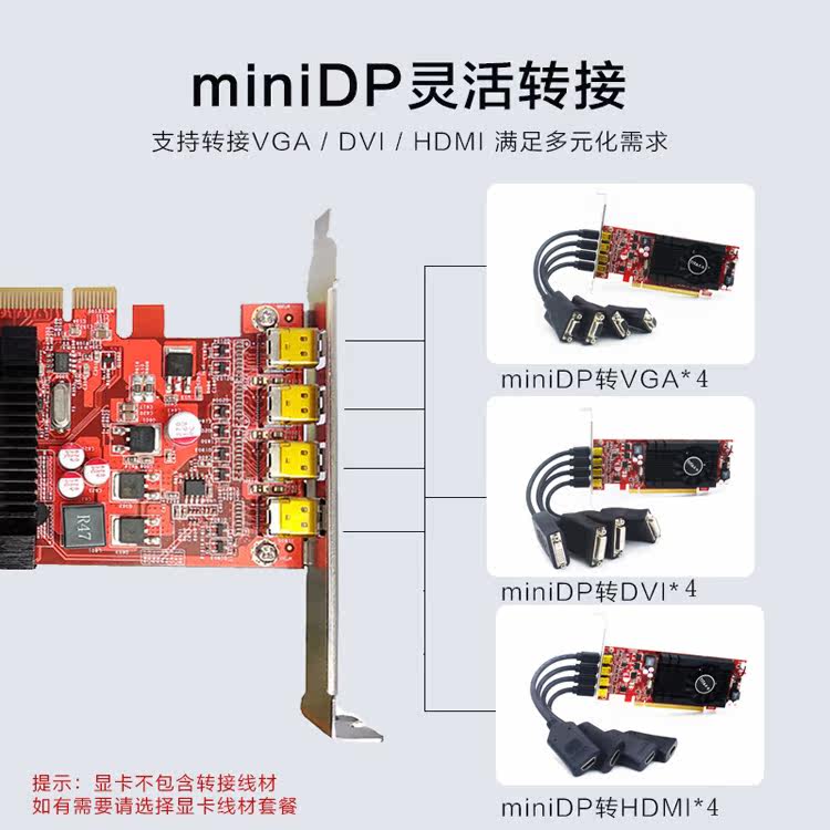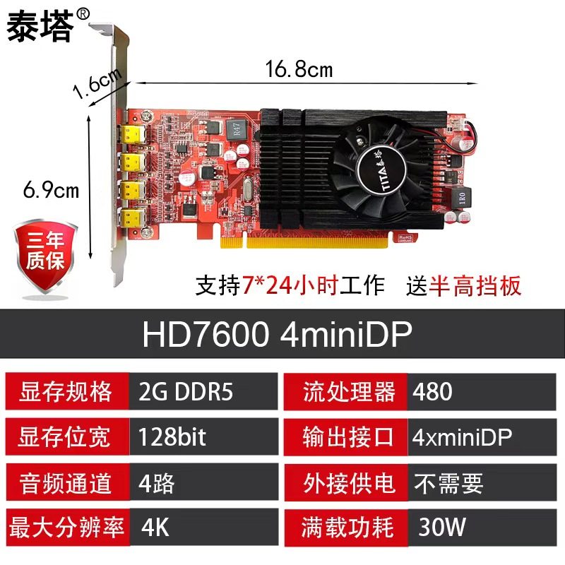 4屏HDMI VGA 炒股分屏投影拼接监控半高单槽显卡HD7600