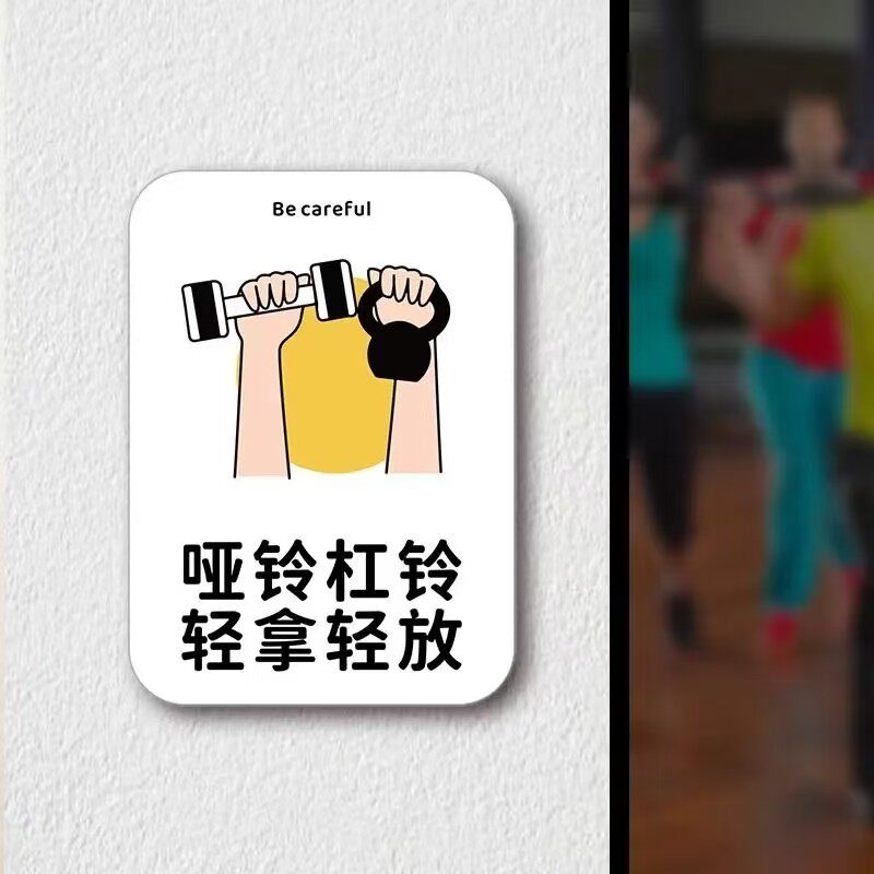 亚克力健身房提示牌健身器械轻拿轻放提示牌禁止赤膊创意墙贴定制
