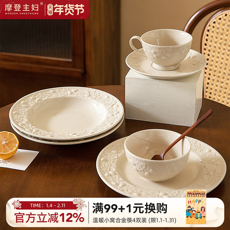 摩登主妇浮雕餐具盘子家用菜盘2026新款高颜值草帽盘鱼盘法式餐盘