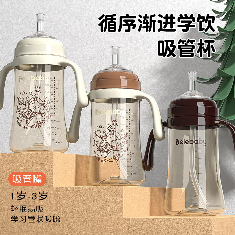 世喜适配直饮水杯9个月-3岁大宝宝PPSU吸管学饮杯喝奶奶瓶奶嘴