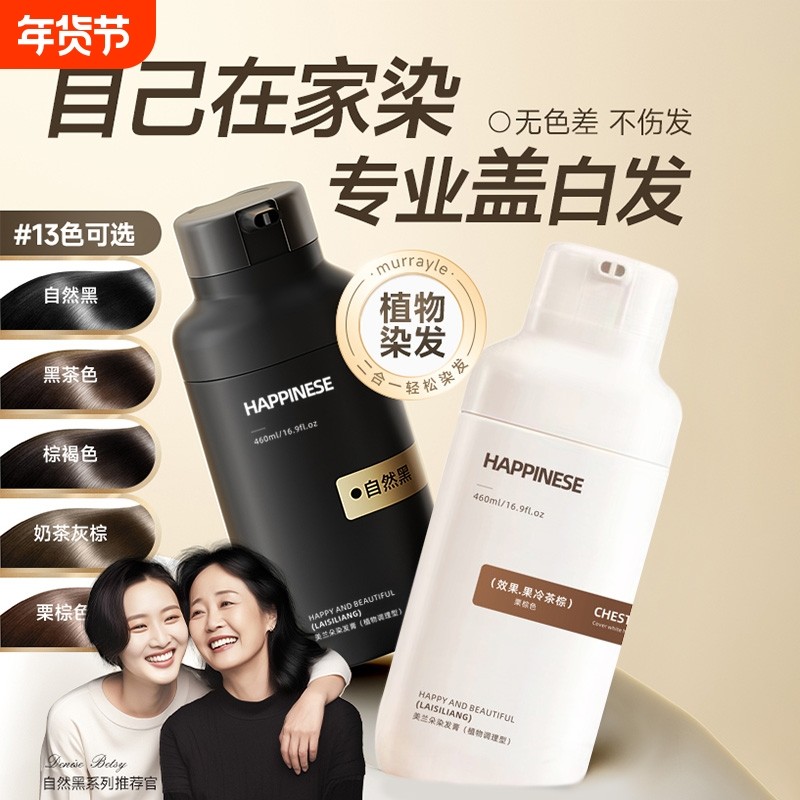 染发膏纯植物无刺激黑茶色男女专用泡泡自己染发剂正品官方旗舰店