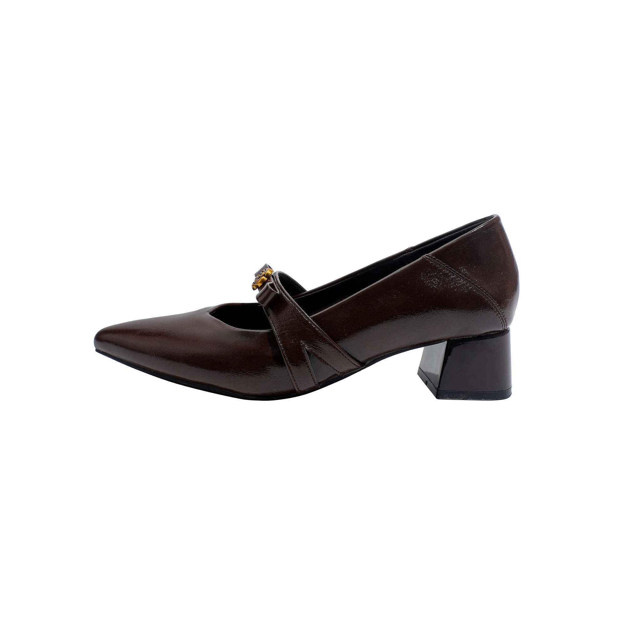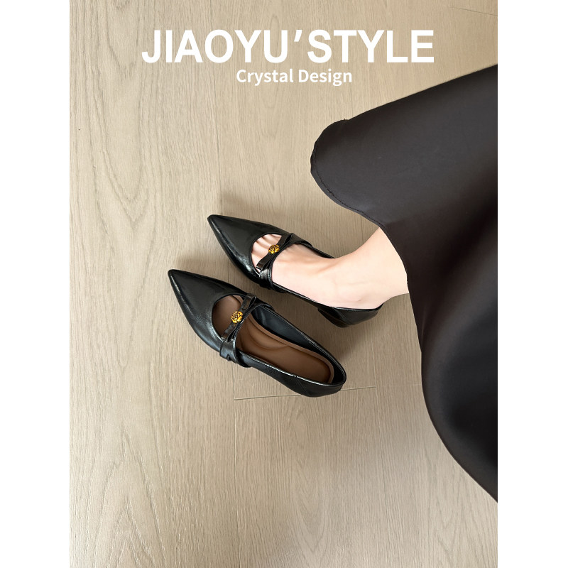 真皮~骄屿复古浅口高跟鞋山茶花一字扣粗跟单鞋尖头气质玛丽珍鞋