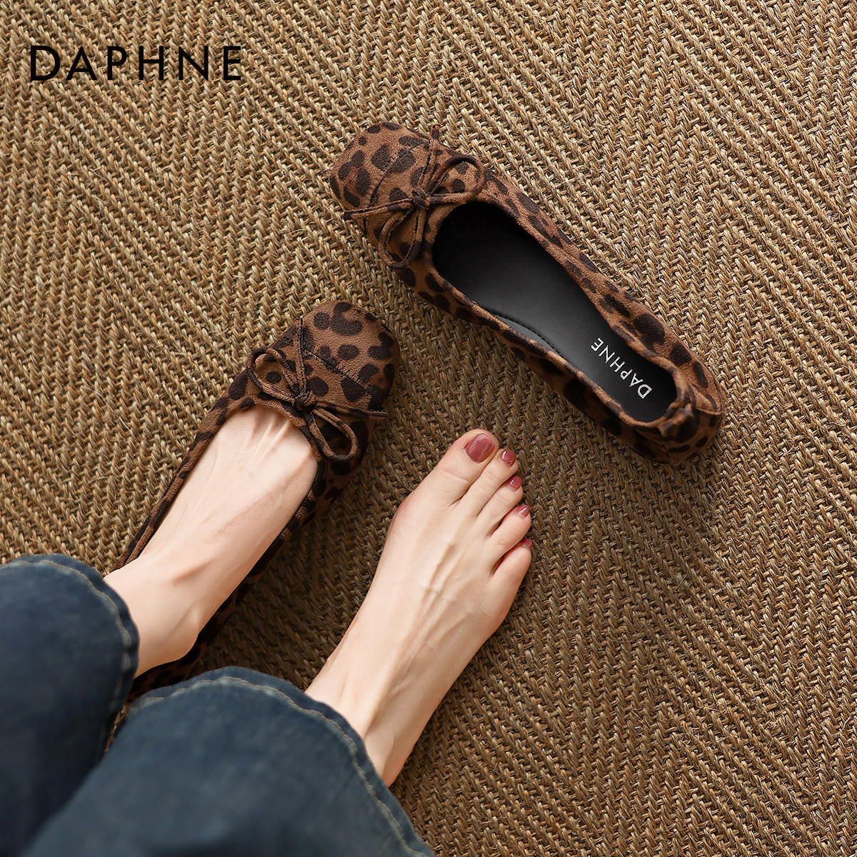 达芙妮豹纹单鞋女2026新款春季浅口平底鞋法式玛丽珍鞋芭蕾豆豆鞋