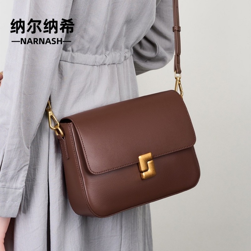 纳尔纳希牛皮豆腐包小方包真皮女包腋下包简约高级感单肩斜挎包女