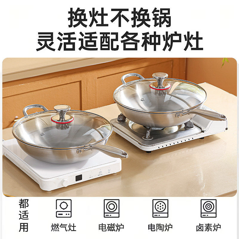 德国三头鹰无涂层钛锅不粘锅电磁炉燃气纯钛炒锅多功能家用炒菜锅