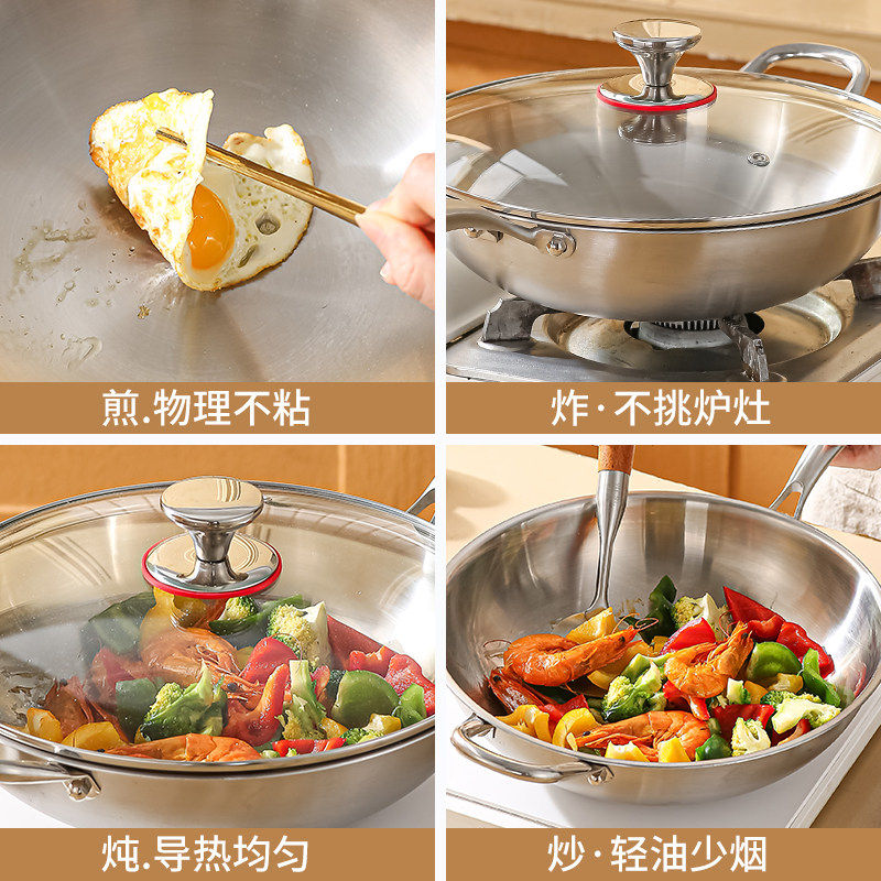 康巴赫316不锈钢炒锅家用特厚食品级不沾锅电磁炉燃气灶专用无a3
