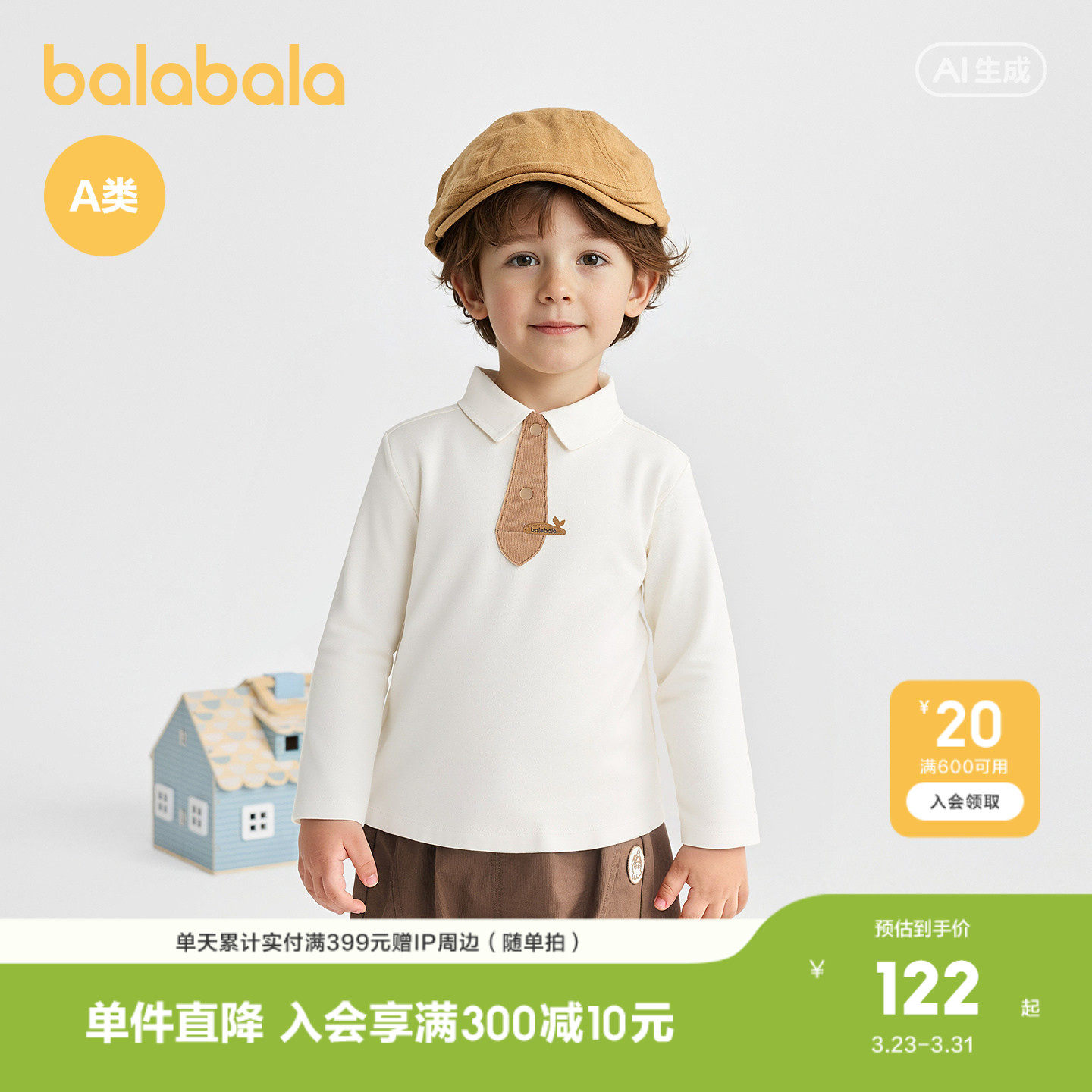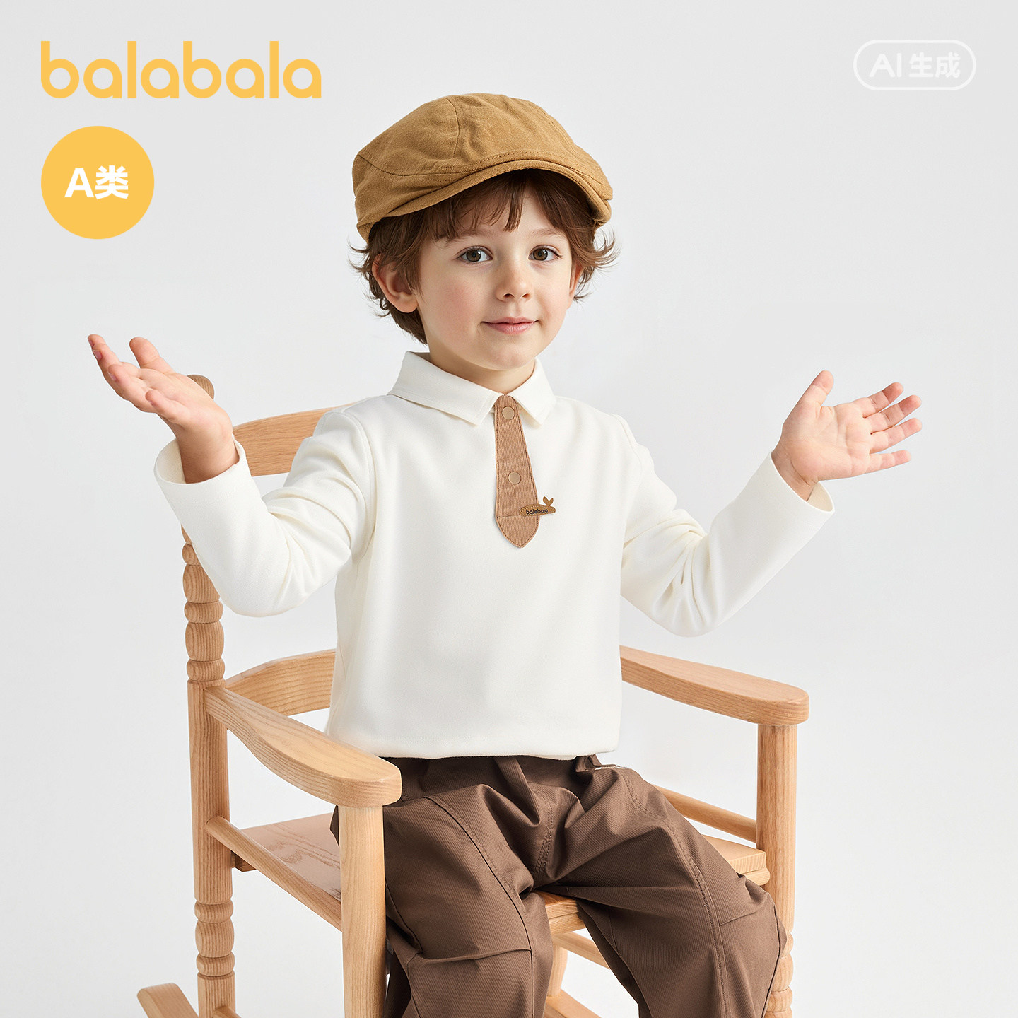 【商场同款】巴拉巴拉童装儿童长袖T恤男童2026新春装领带半开襟