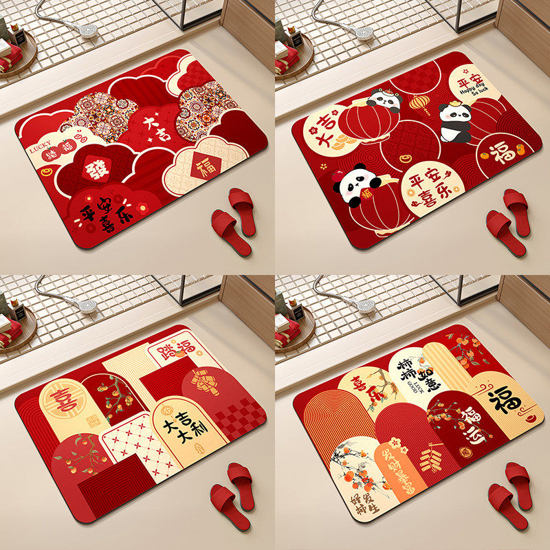 卫生间地垫吸水2026年新款浴室红色马年门口防滑硅藻泥脚垫子速干