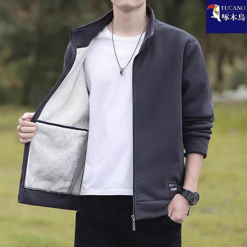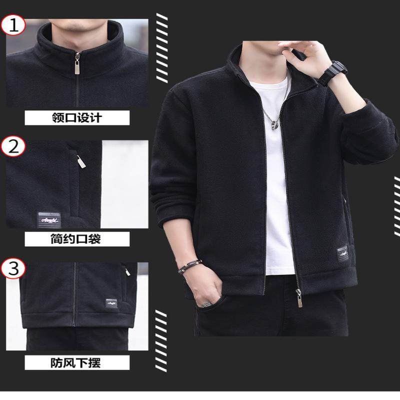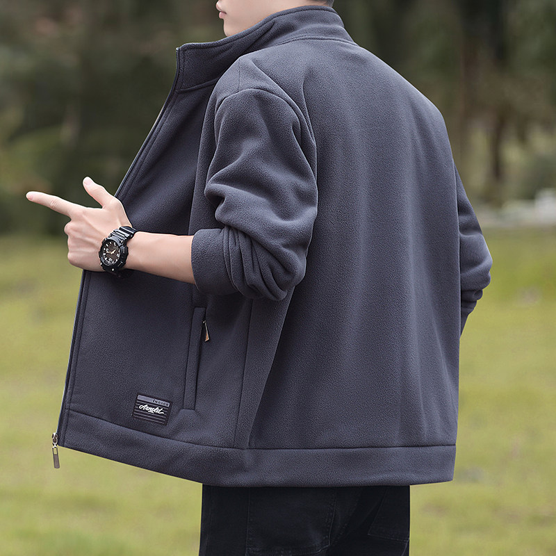 啄木鸟户外休闲夹克外套男士秋冬季抓绒衣摇粒绒开衫大码抗静电
