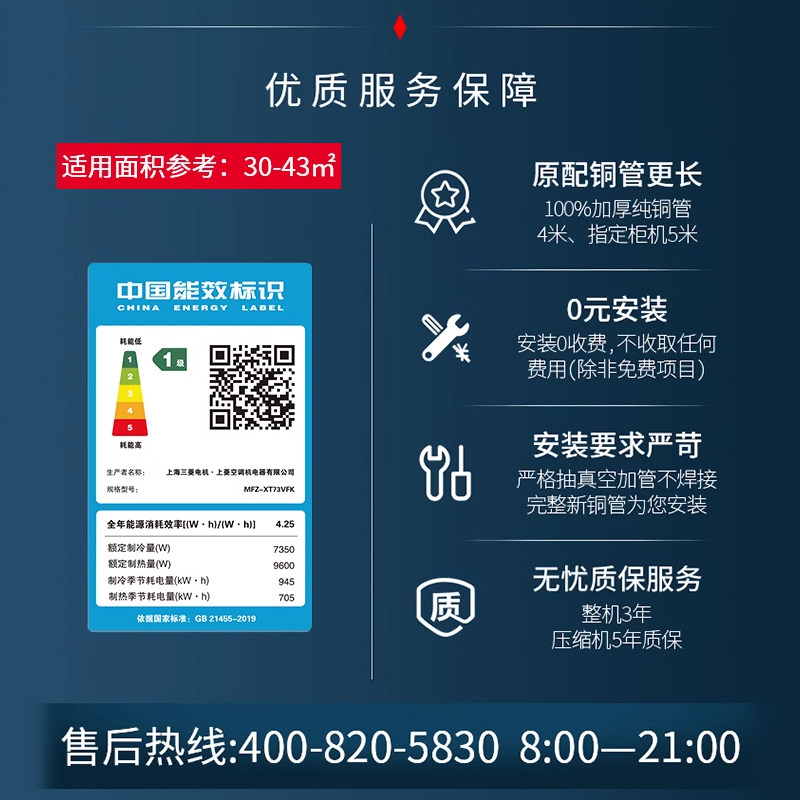 三菱电机MFZ-XT73VFK全直流变频一级能效3匹客厅立式柜机空调官方