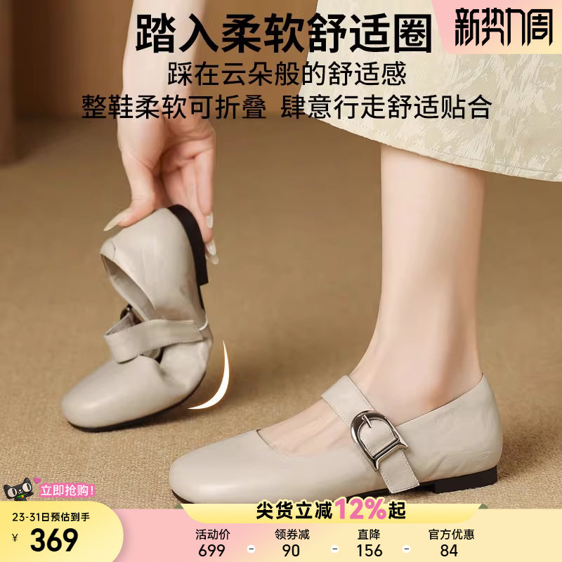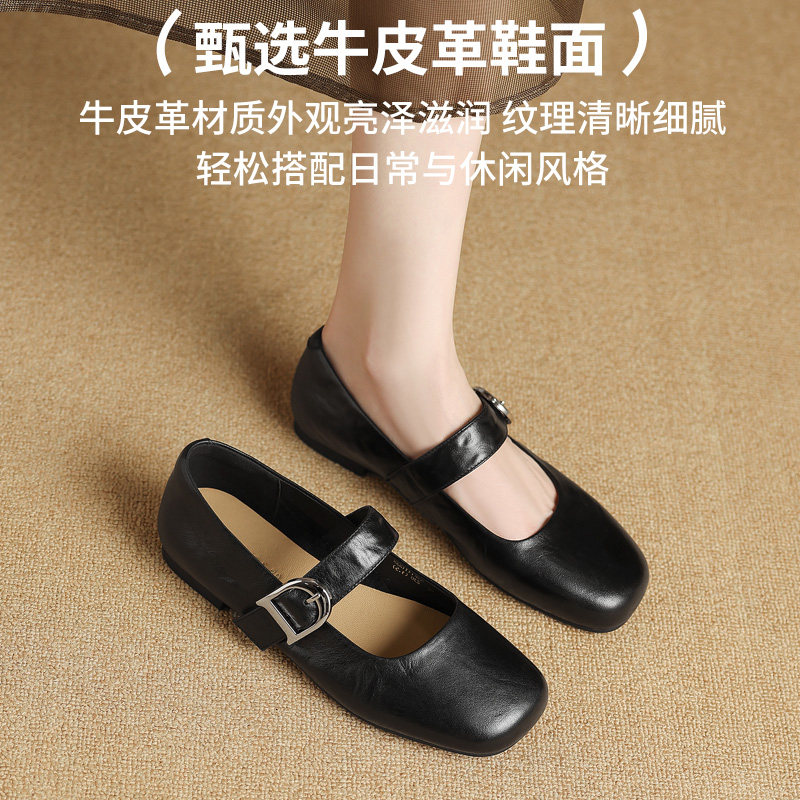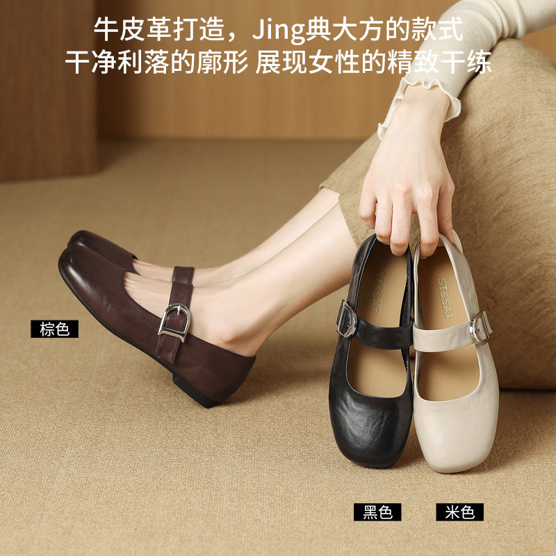 星期六法式平头单鞋女款春季新款头层牛皮真皮软底乐福鞋妈妈鞋子