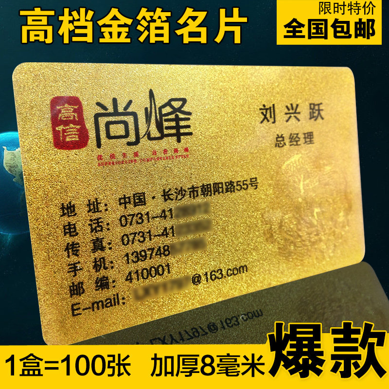 金箔名片制作免费设计包邮金属vip卡片创意高档名片设计制作塑料PVC拉丝名片定做会员卡商务名片制作彩色印刷