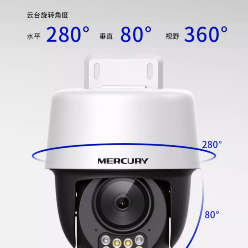 水星安防监控摄像头家用无线云台摄影头360度全景wifi室内全彩夜视高清室外门口户外防水双向语音可对讲球机