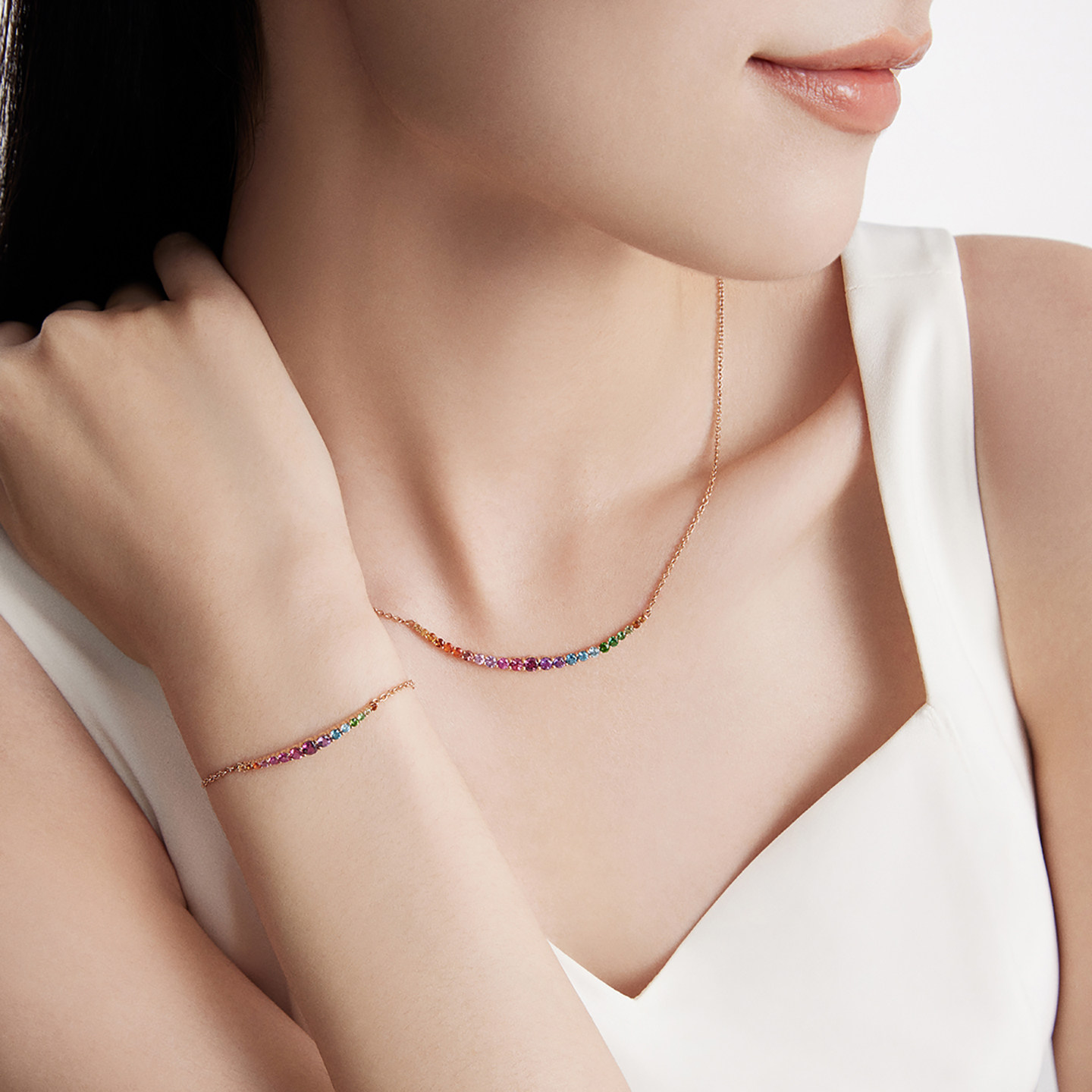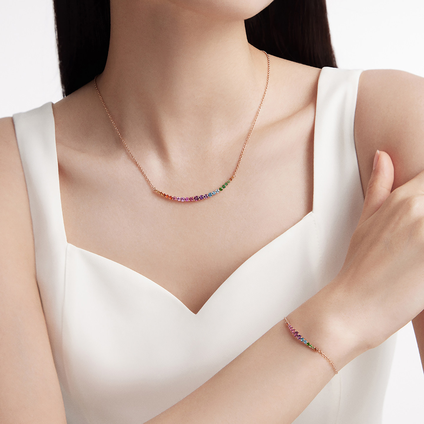 ENZO 微笑彩虹 18K金多彩宝石项链女EZV2515新春礼物