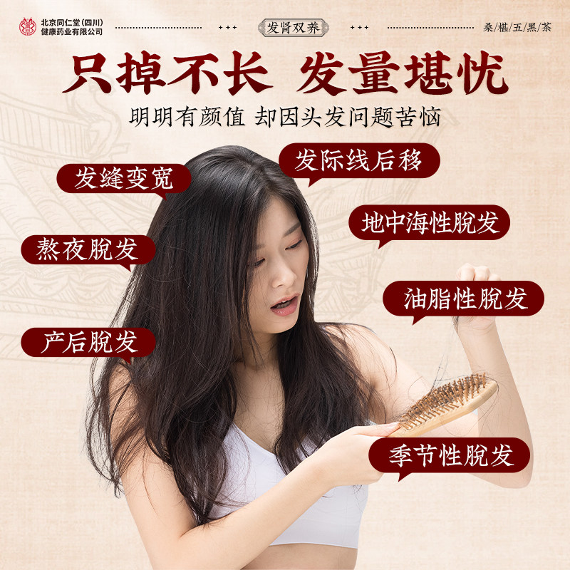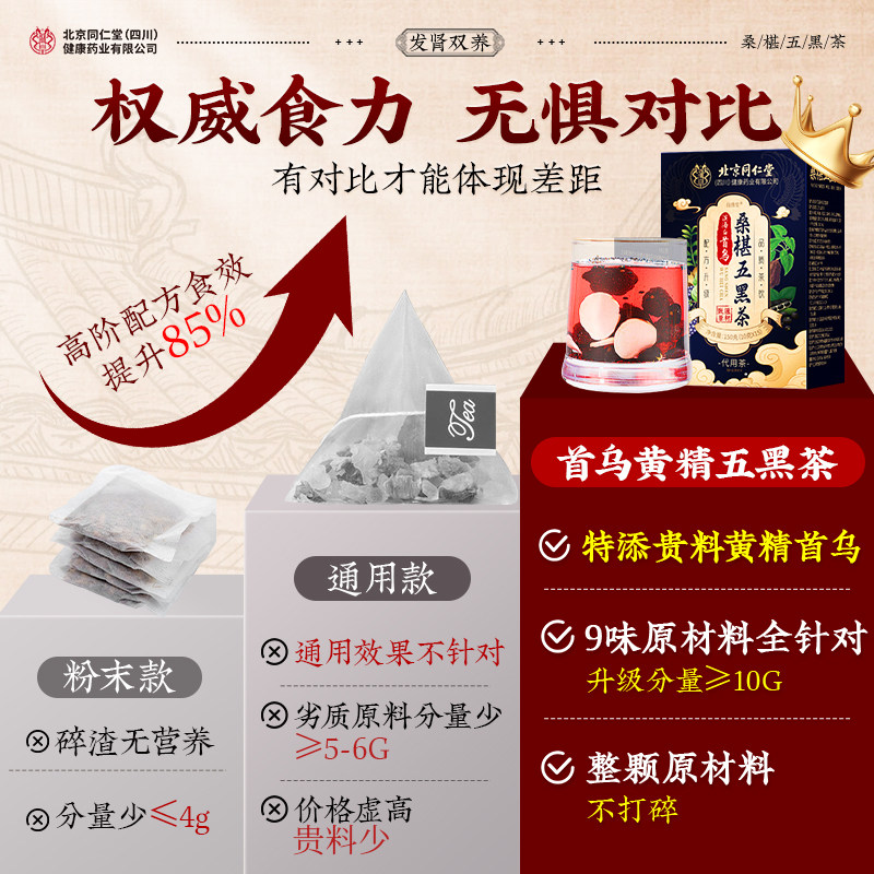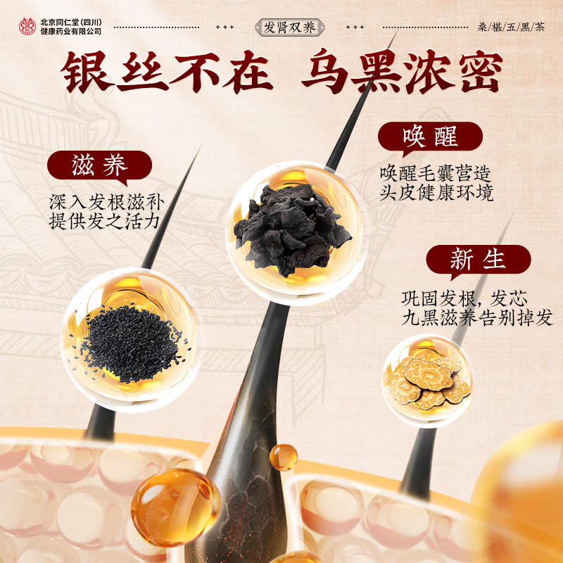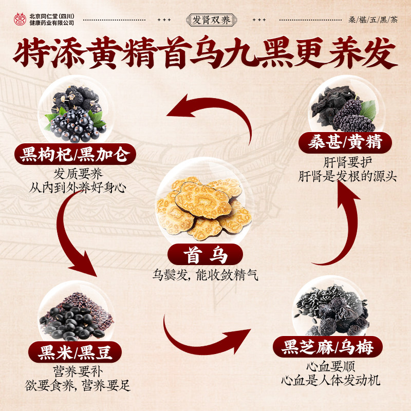 北京同仁堂首乌黄精桑椹五黑茶黑豆黑芝麻黑枸杞熬夜固发养生茶包