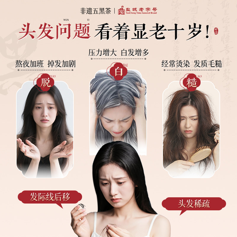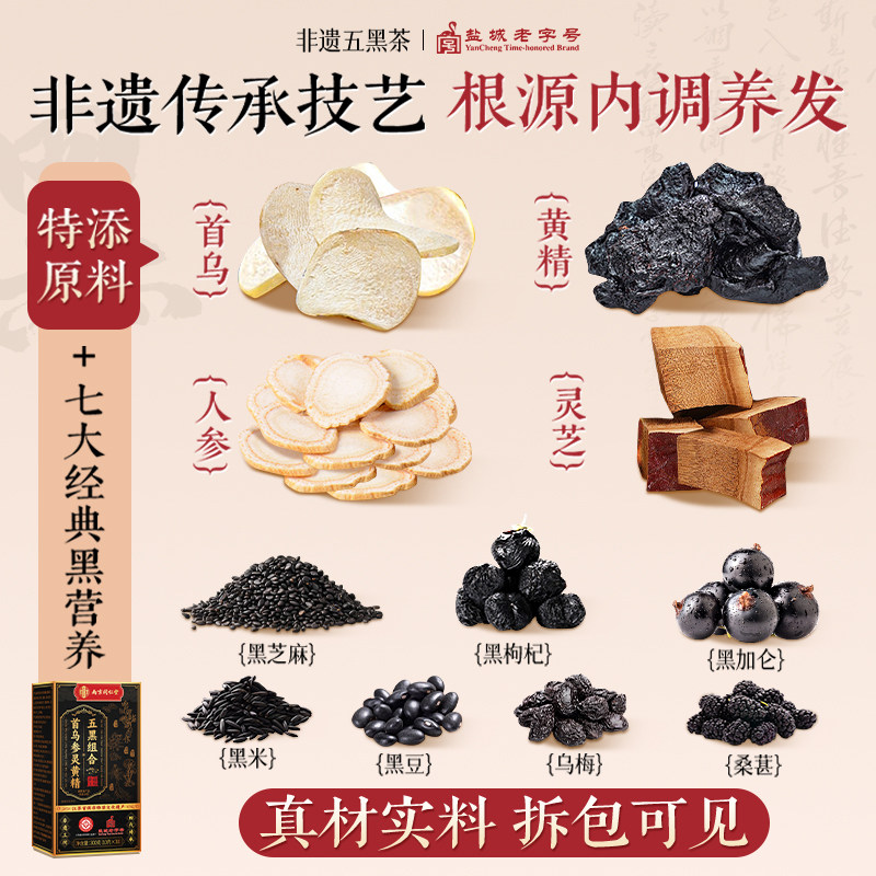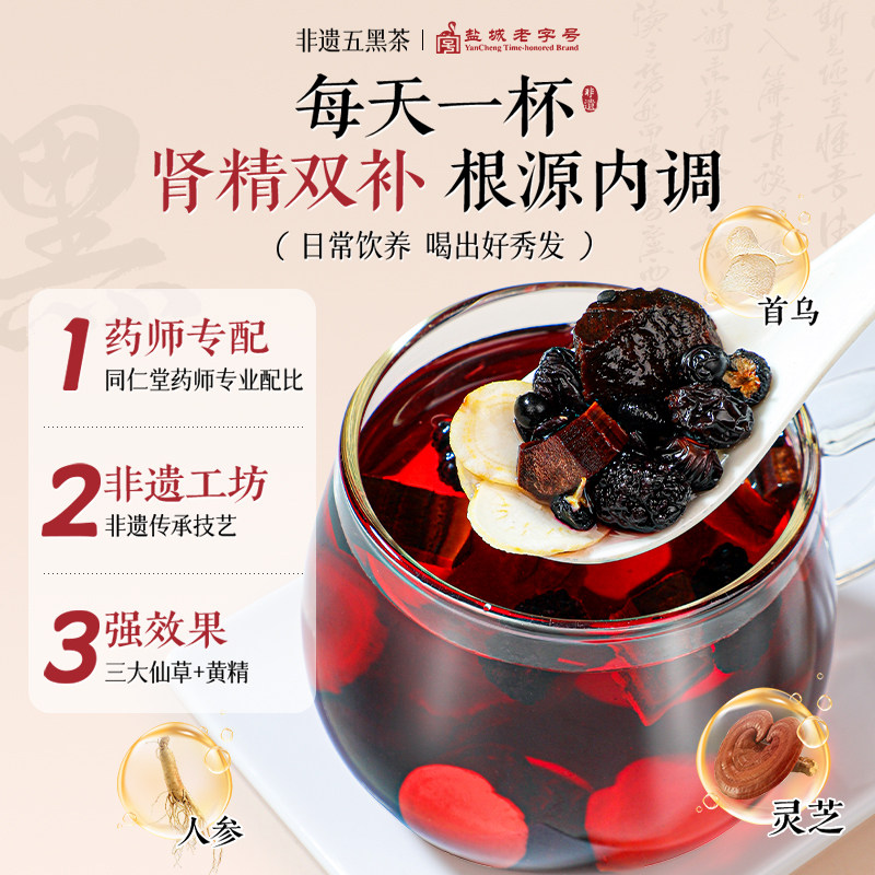 非遗首乌黄精五黑茶养黑芝麻脱白发人参灵芝桑葚官方旗舰店养生茶
