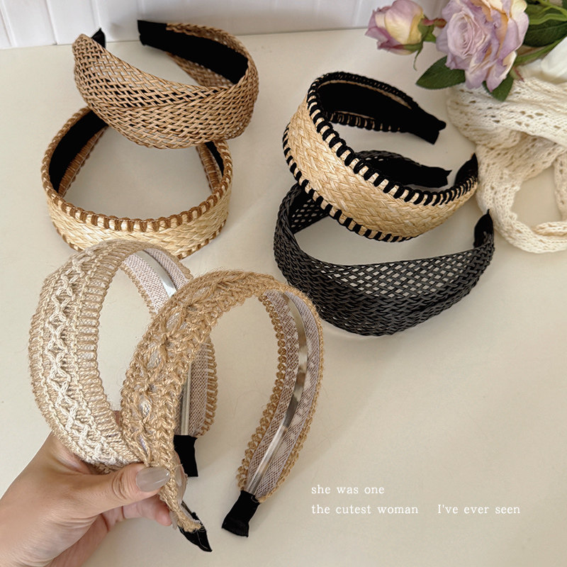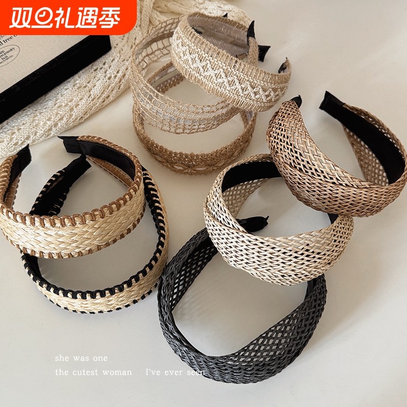 度假风草编宽边发箍女款波西米亚头箍日常外戴发捆高颅顶洗脸发卡