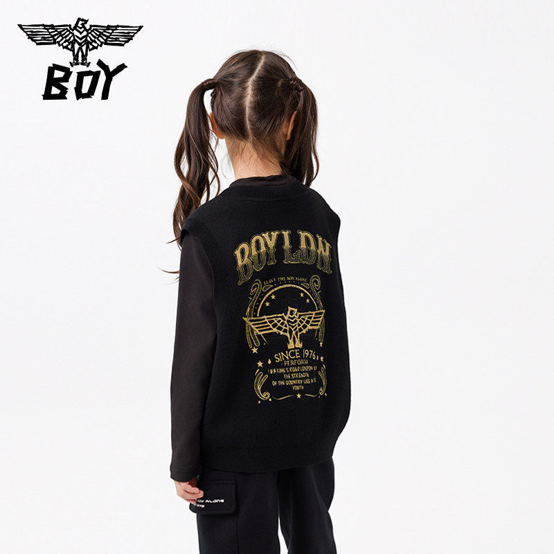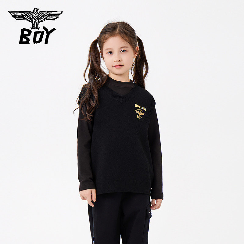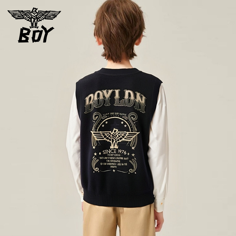 BOY童装25秋冬新品儿童针织马甲背心时尚潮流毛衣男女童中大童