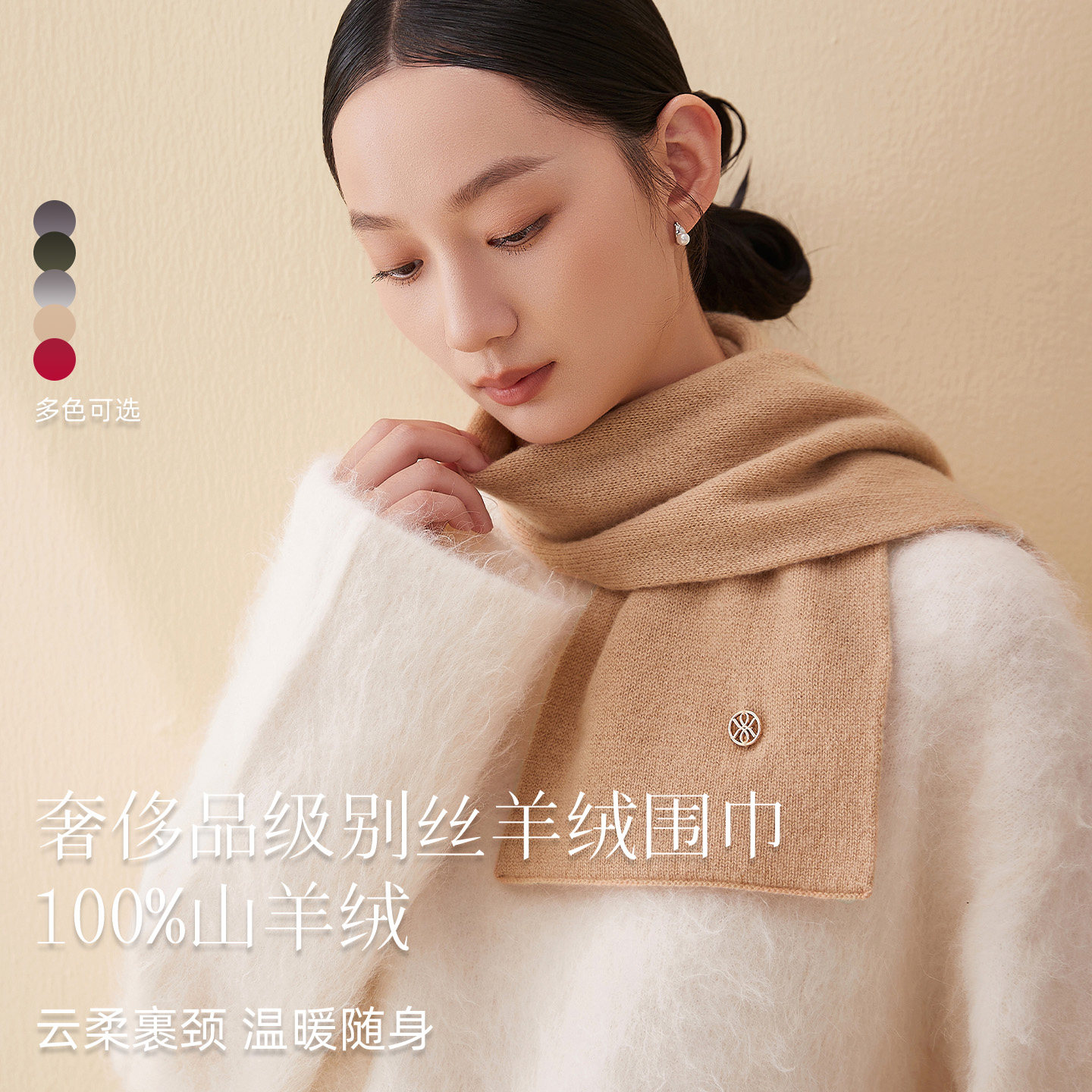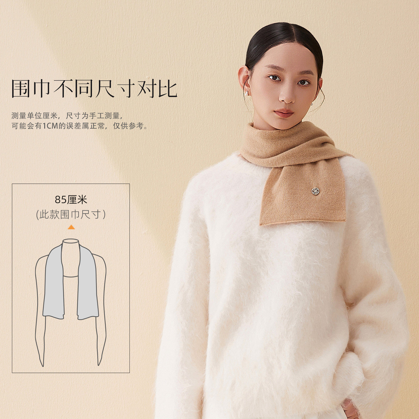 万事利秋冬新品山羊绒小围巾纯色女生时尚保暖韩版围脖松韵
