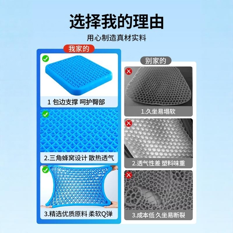 汽车坐垫单片夏季蜂窝凝胶冰丝通用办公座垫硅胶冰凉透气货车屁垫