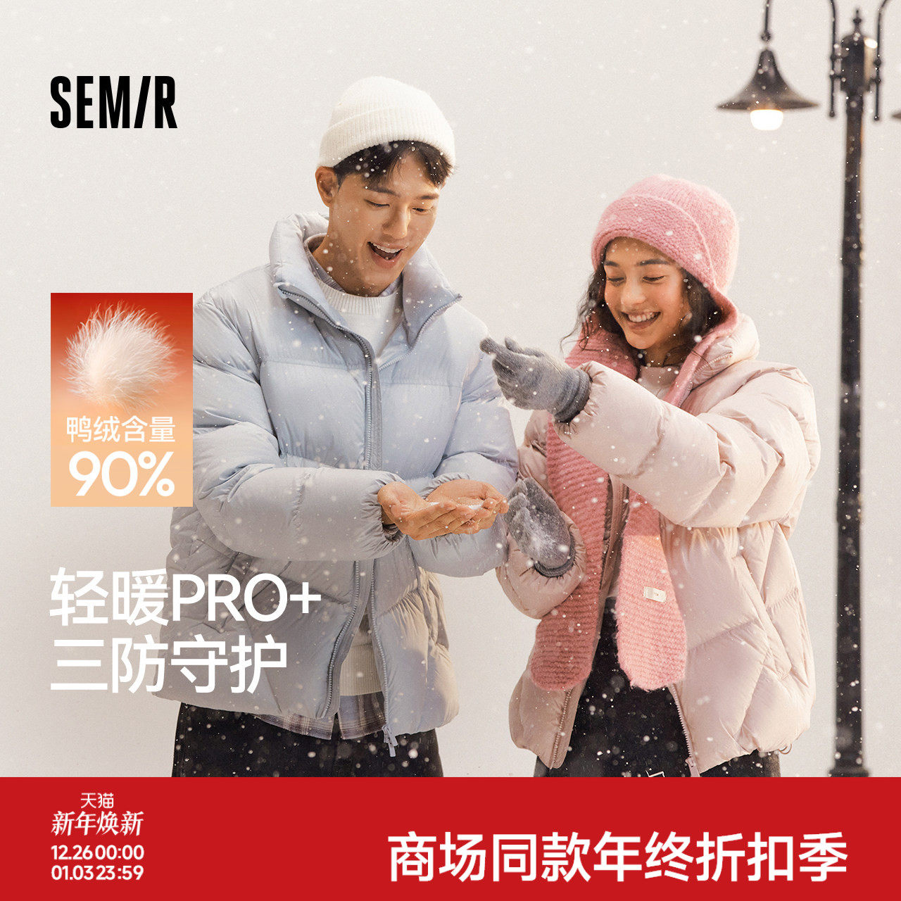 商场同款森马羽绒服男装女装25冬季加厚情侣外套三防黑面包服休闲