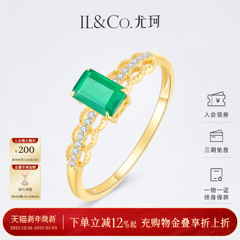 ILCO尤珂 黄18K金祖母绿天然宝石钻石镶嵌设计感显气质戒指手饰女