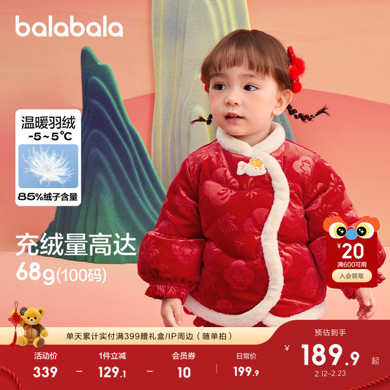 巴拉巴拉童装宝宝羽绒服婴儿衣服儿童外套红色拜年服春新年上衣潮