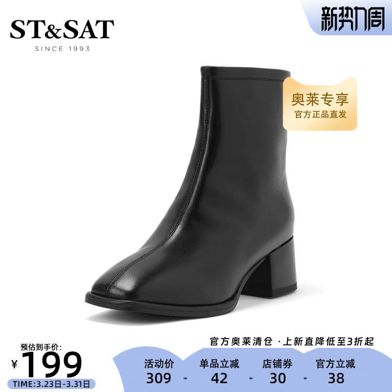 星期六女士时装靴冬新款粗跟中跟加绒瘦廋短靴女靴SS24116502