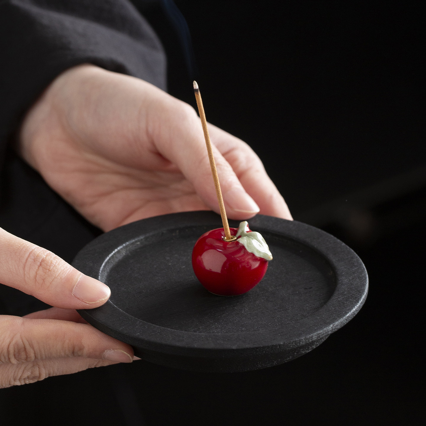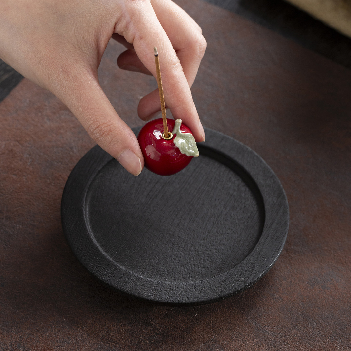 【保佑平安】创意陶瓷小苹果线香插座禅意茶室桌面香薰炉立香香炉