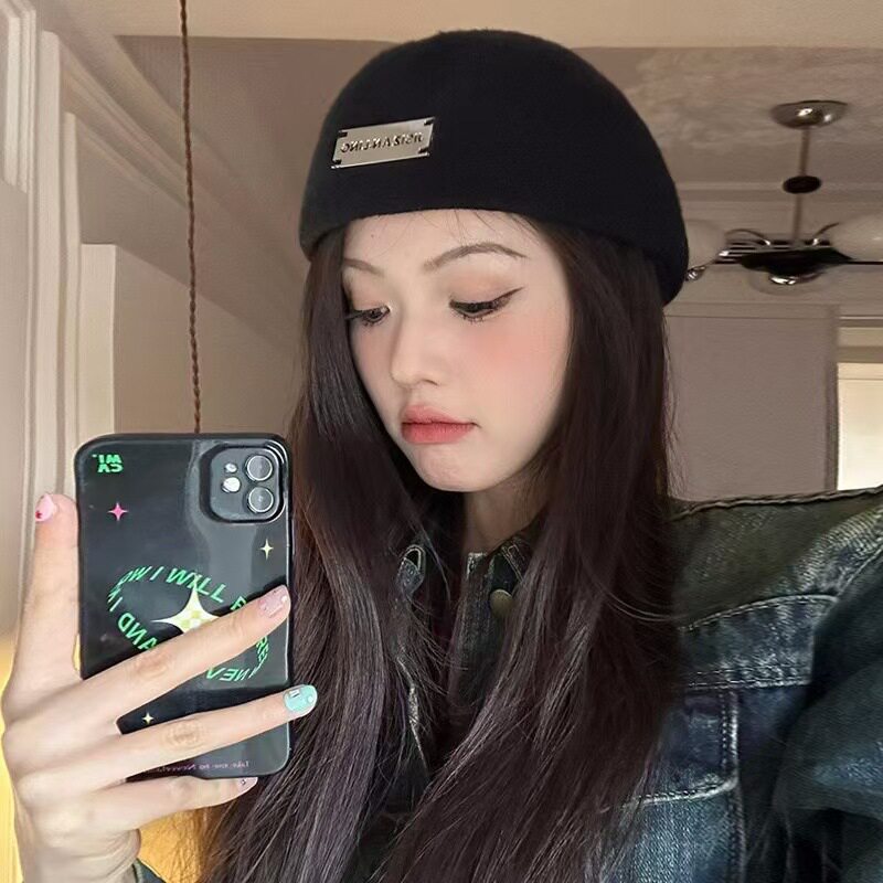 黑色贝雷帽女春秋大头围显脸小反戴前进帽秋冬定型羊毛呢画家帽子