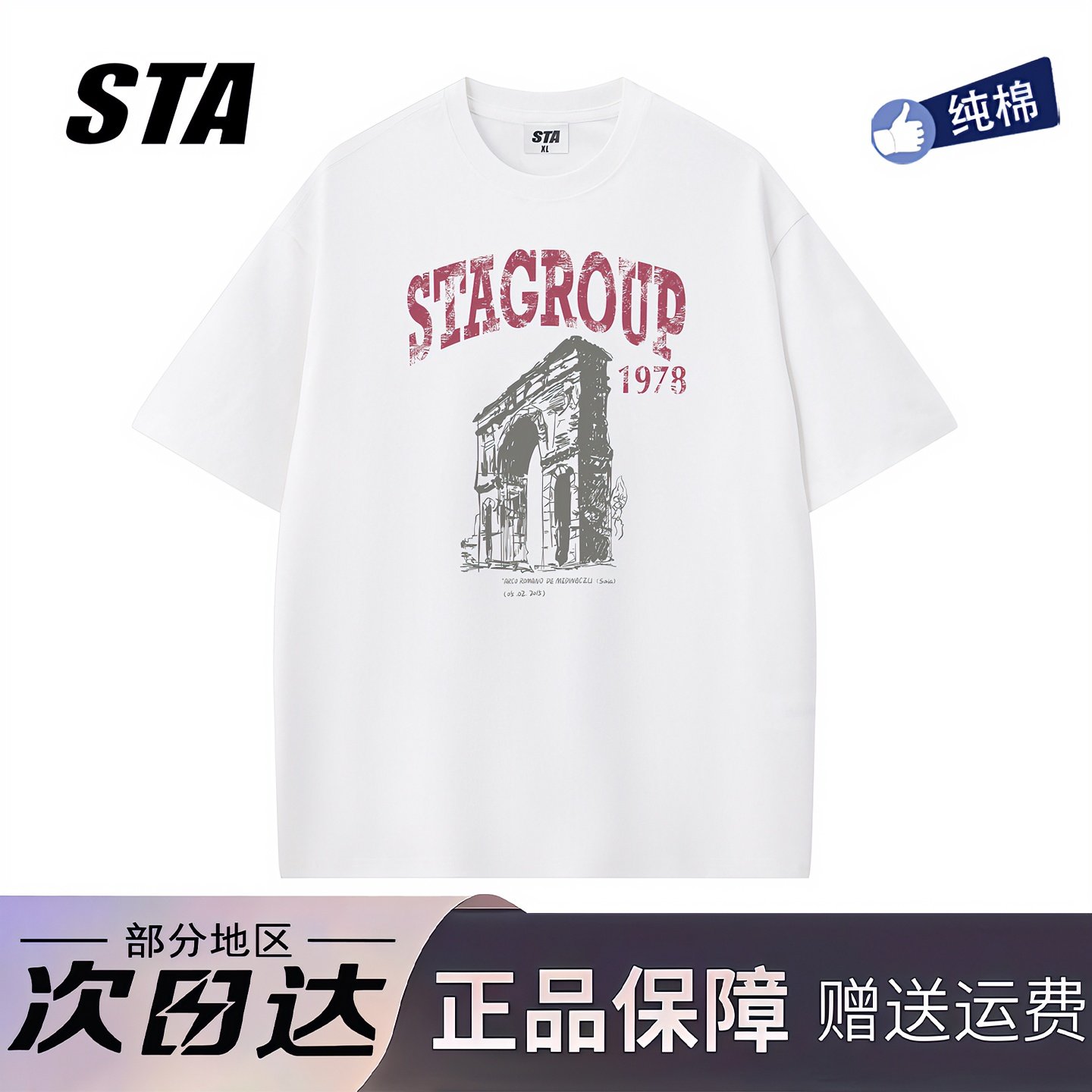 STA旗舰店美式潮牌重磅纯棉短袖男女夏季高街复古vintage黑色t恤