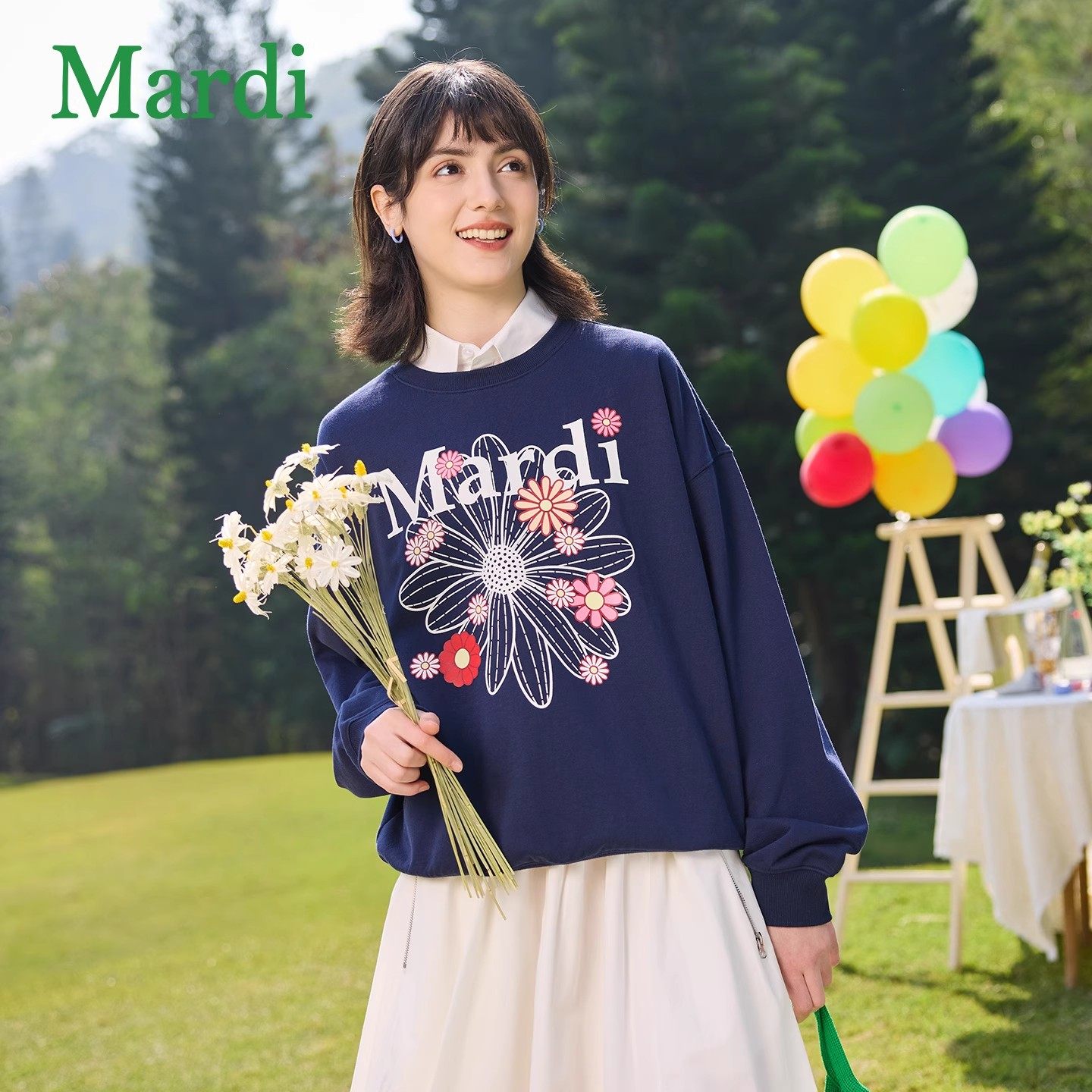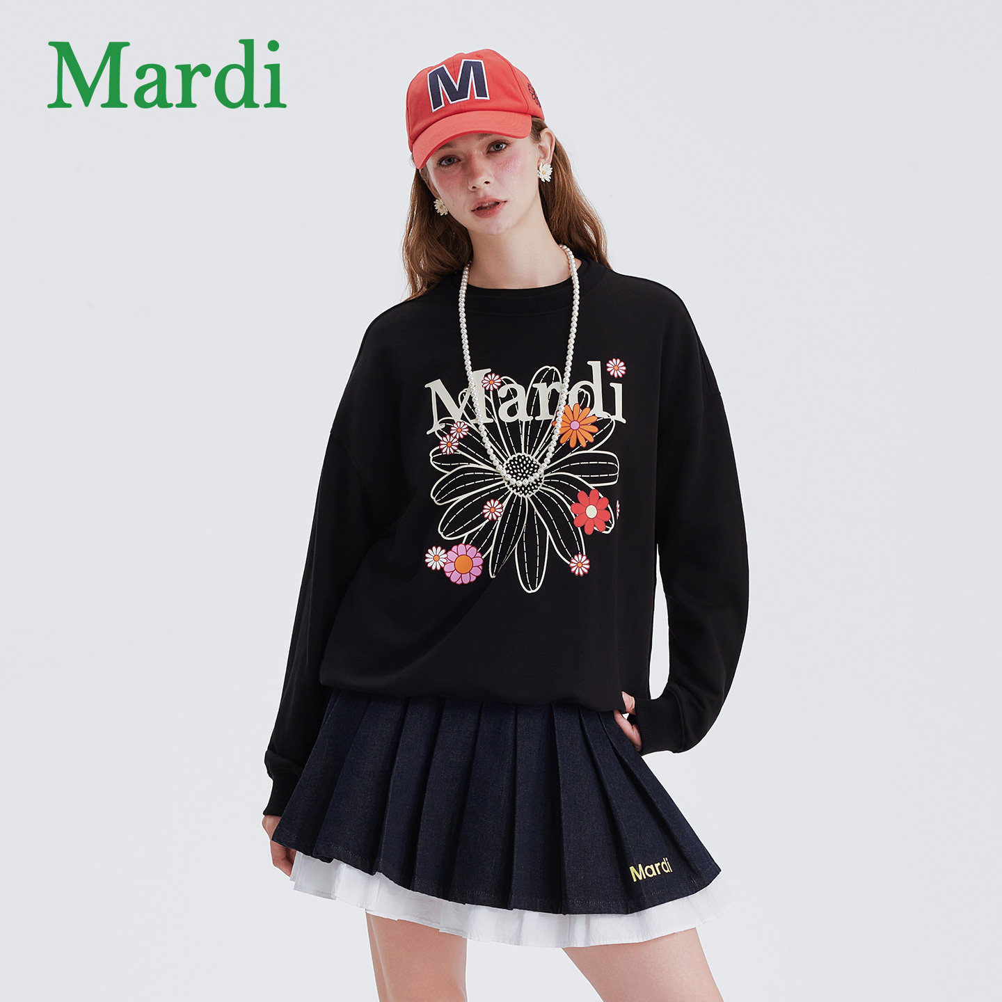 MARDI小雏菊卫衣女士时尚圆领新款宽松休闲百搭长袖上衣黑色少女